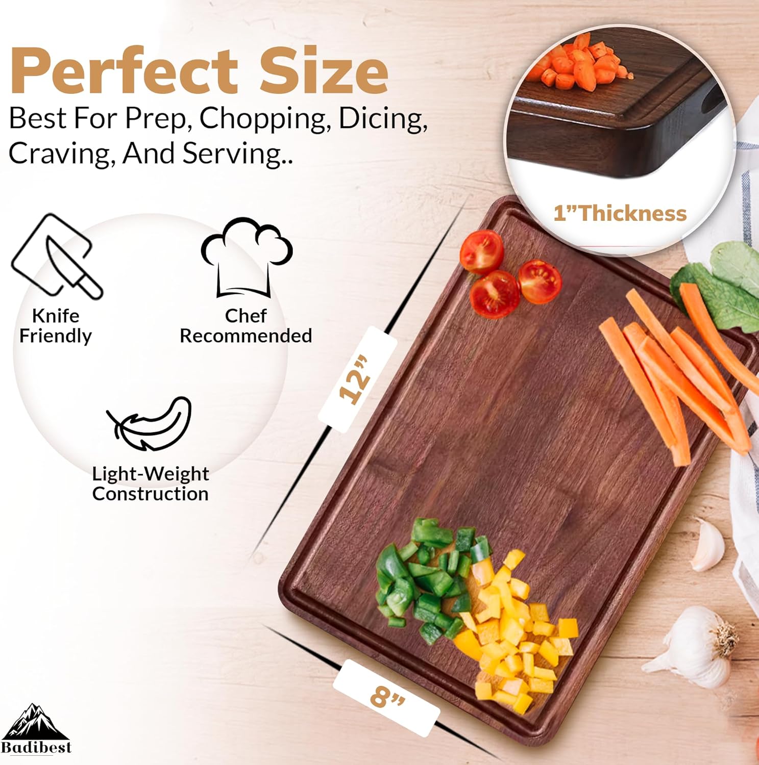 - 【𝐆𝐞𝐧𝐭𝐥𝐞 𝐨𝐧 𝐊𝐧𝐢𝐯𝐞𝐬 – 𝐒𝐦𝐨𝐨𝐭𝐡 & 𝐁𝐥𝐚𝐝𝐞-𝐒𝐚𝐟𝐞】:Unlike plastic, bamboo cutting board, or acacia wood cutting board alternatives, this walnut wood cutting boards protects your knives from dulling. The smooth surface of this non toxic cutting board supports clean, effortless cuts, whether you're chopping herbs or carving meat.
