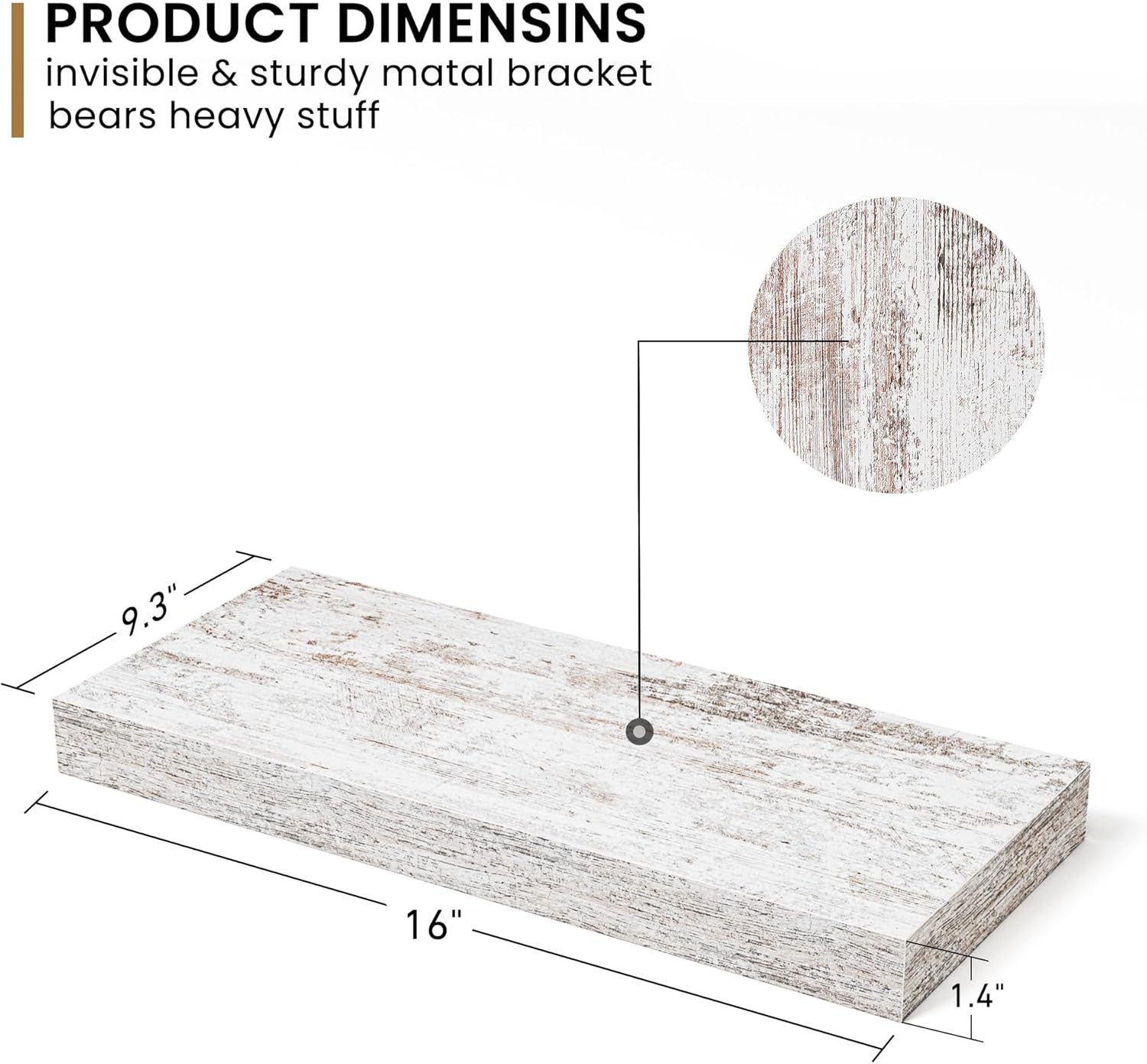 Fun Memories Deep Floating Shelves - 16" W x 9" D x 1.6" H Rustic Grey Wall Shelf - Wall Mounted Shelves for Storage - Wooden Shelves with Invisible Brackets for Living Room, Farmhouse - Set of 2