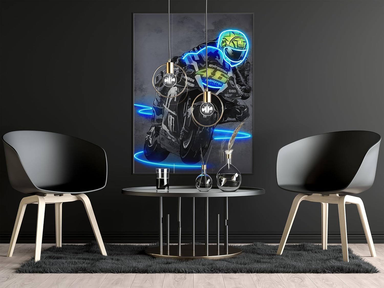 - Eye-Catching Artwork: This Formula Moto Racing Canvas Wall Art features a vivid painted neon glow effect, adding depth and energy to any room— The light effects come from the author's skillful painting without the actual strip installed
