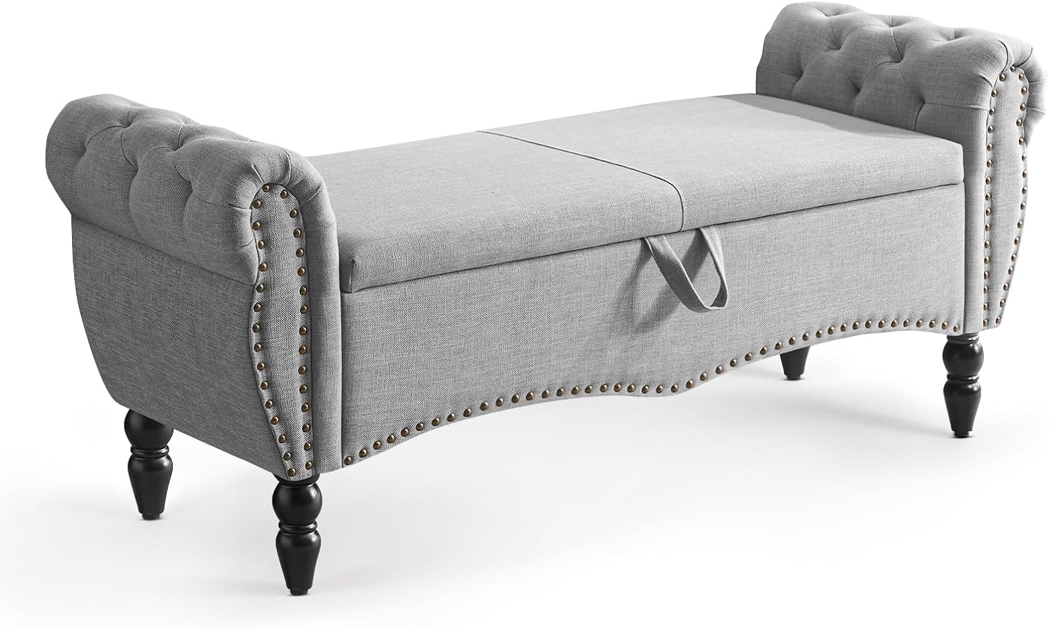 Furniliving 51.75" Storage Ottoman Bench for Living Room, Modern Bedroom Bench with Rolled Arm Upholstered End of Bed Bench Shoe Storage Bench Indoor Bench with Wood Legs Entryway Bench,Grey, Linen