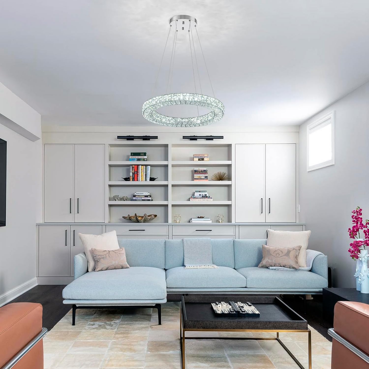 - Ring Chandelier Design: this crystal chandelier pendant light is made of K9 crystals and polished sturdy stainless steel, featuring with 3 sided crystals, you can see the lights coming out from every angles, you can also enjoy the bright lighting and luxury decoration at the same time .