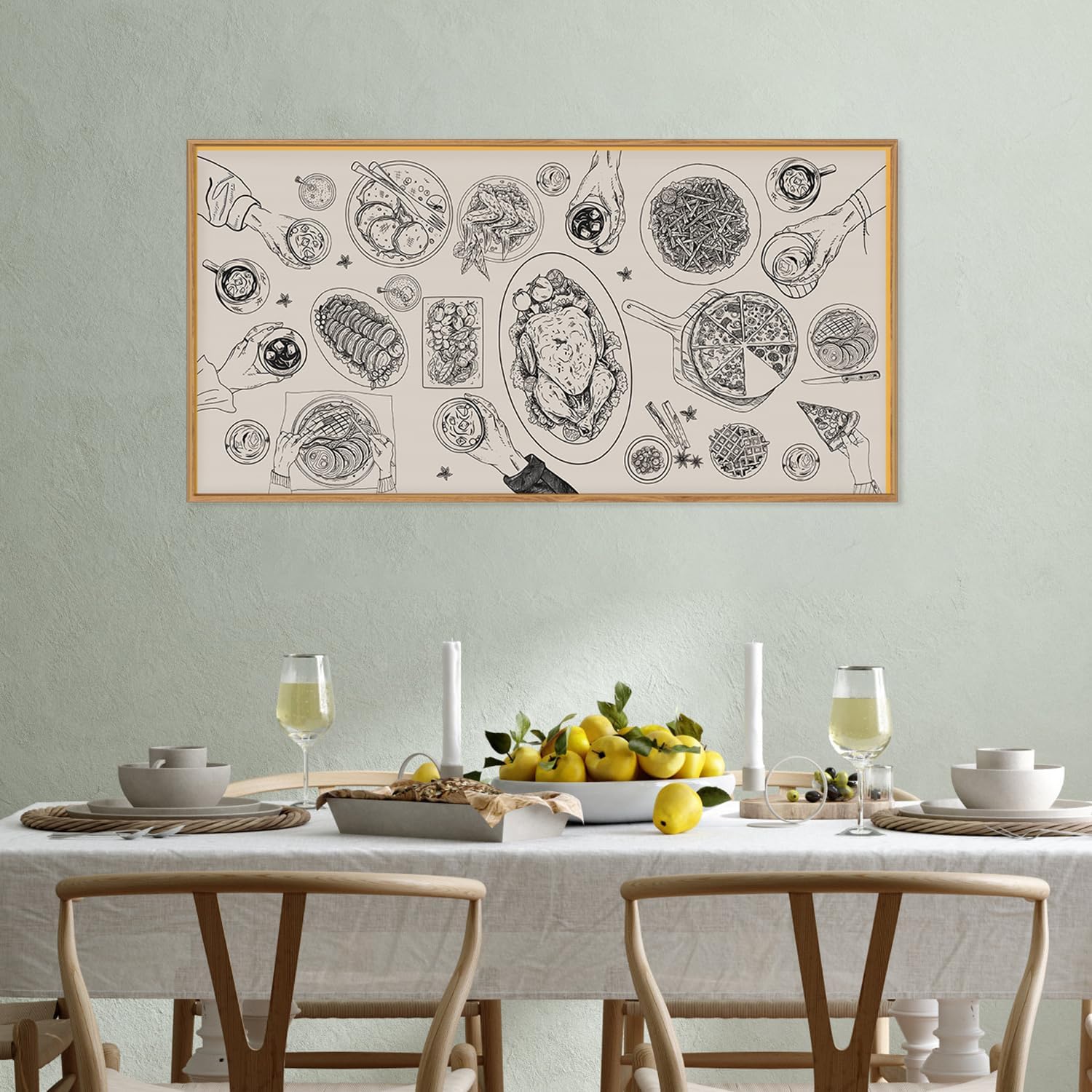 - 【Thanksgiving Reunion Wall Art】The decorative paintings feature reunion atmosphere design with food and drink as the primary tones. They skillfully integrate elements of steak, drinks, and pizza to create a gatherings aesthetic.