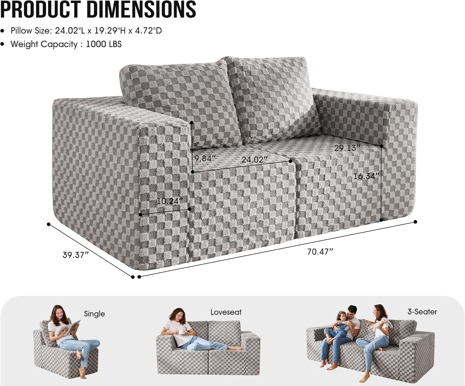 - Flexible Modular Design: The core feature of this modular sectional sofa is its modular and free combination concept. The cleverly designed sofa modules allow you to easily piece and rearrange them to create possible layouts based on their spatial needs and aesthetic preferences. Whether you want a single sofa or loveseat sofa, you can adjust it however you like.