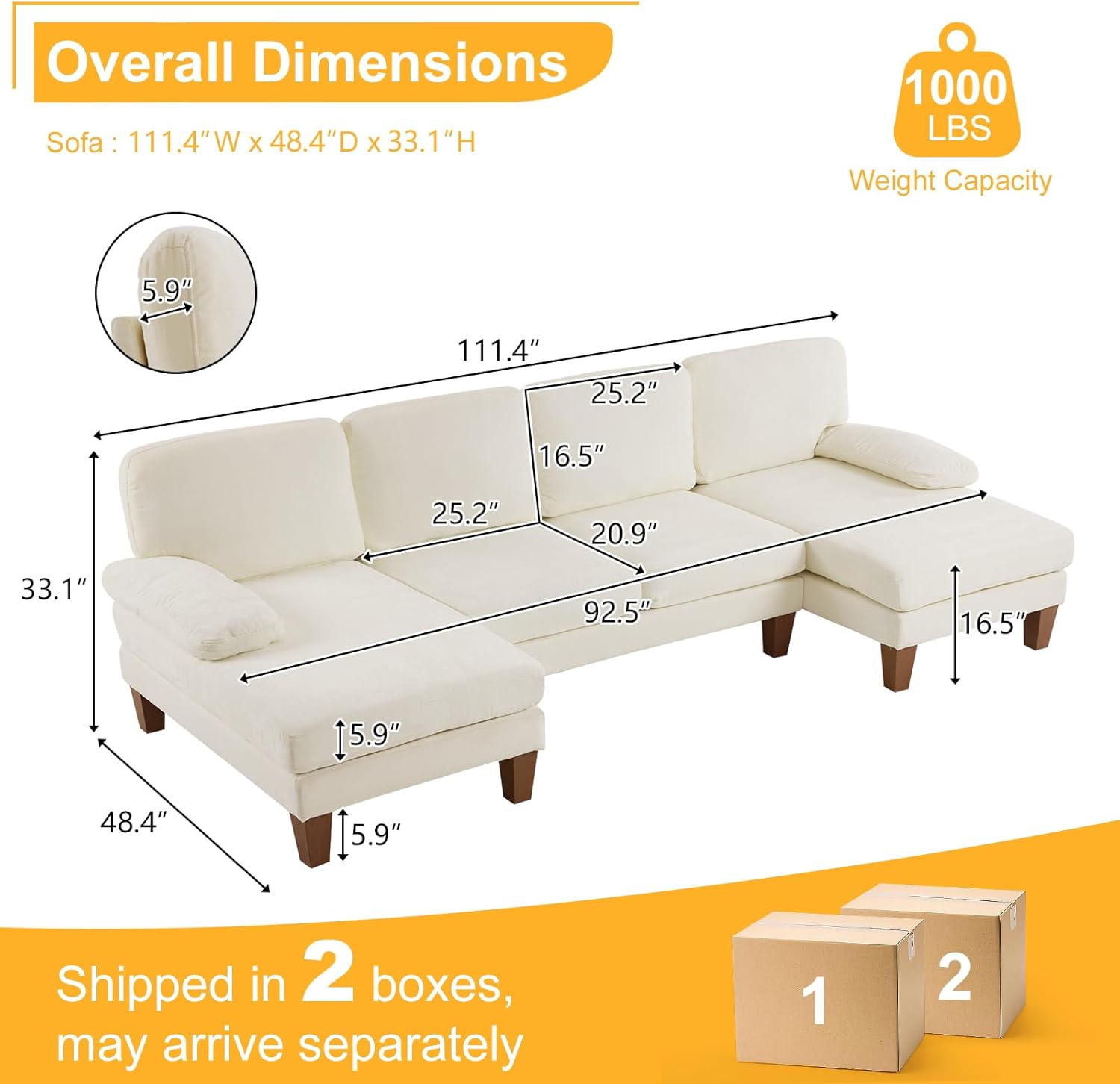 - Product Dimensions : 48.4"D x 111.4"W x 33.1"H