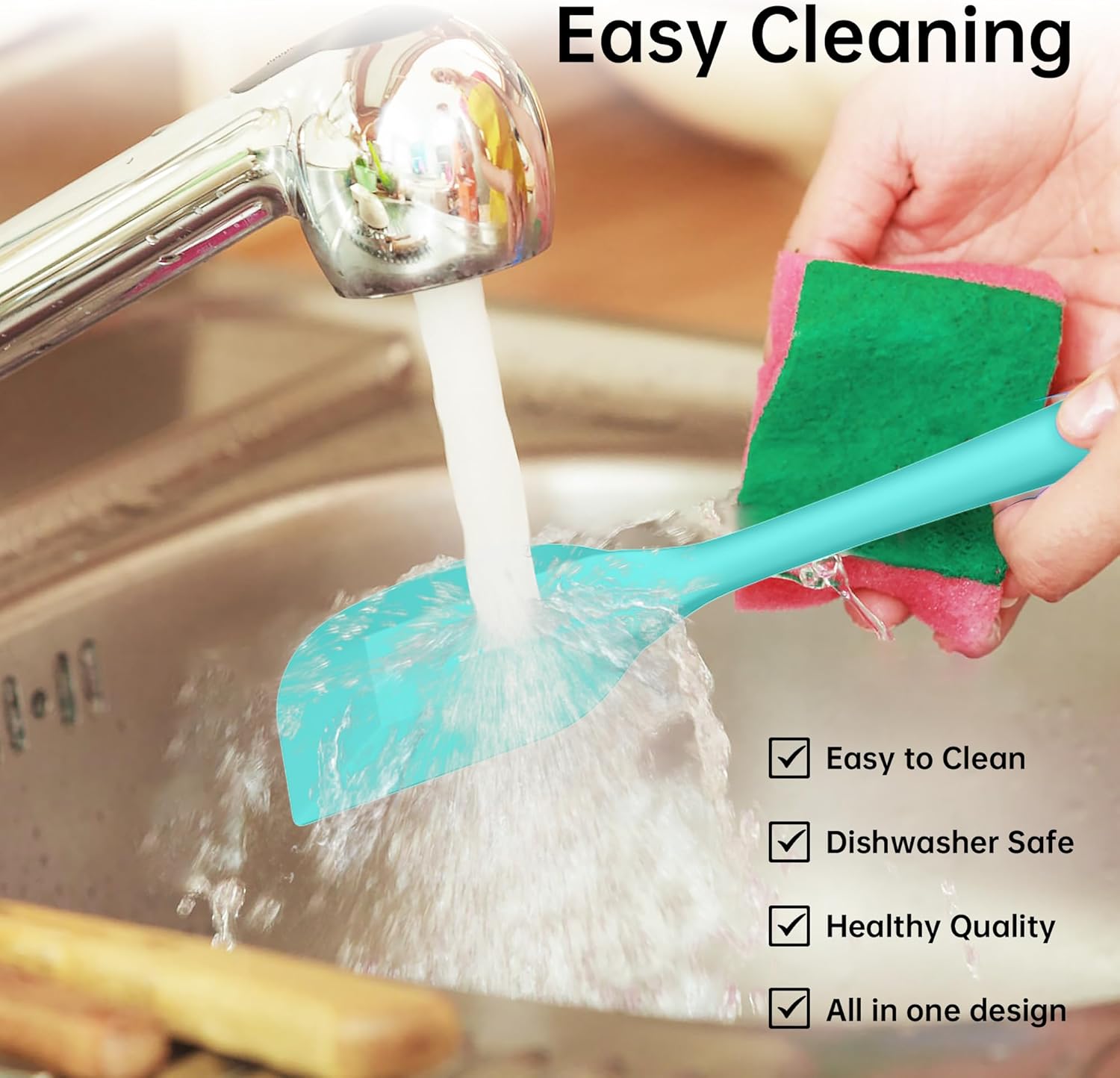 - 【Easy to Clean】: The spatulas for kitchen use in a seamless one-piece shape, comfortable to hold, can be placed in the dishwasher, with a hanging hole design, and can be hung after cleaning.