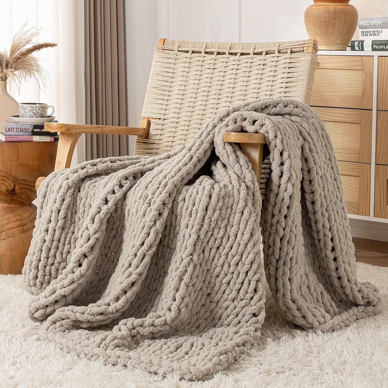 - Exceptional Comfort and Superior Design: Experience unparalleled coziness and relaxation with this chunky blanket. Whether you’re enjoying a quiet movie night, taking a nap, or reading a favorite book, this chunky blanket wraps you in a snug and gentle hug. Its chunky knit not only enhances your comfort but also adds a stylish decorative touch to any living room or bedroom.