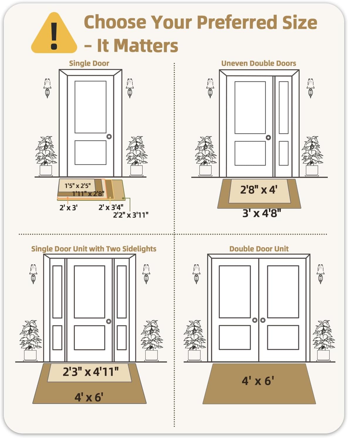 - Low Profile And Versatile: Our indoor mats are thin and flat enough to fit under the door when it swings open without gathering. Having a variety of sizes and colors to choose, you could get the indoor outdoor mat for your front door, back door, entryway, indoor entrance, patio, garage, kitchen, laundry, in Front of Sink, Hallway, home decor or any areas where there are lots of foot traffic.