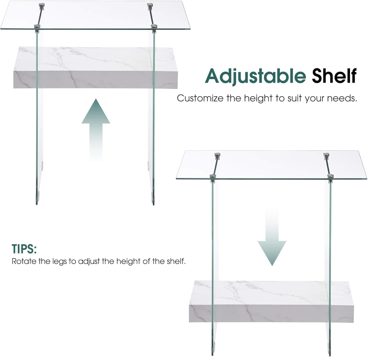- Modern Glass Console Table: 8mm thick clear tempered glass tabletop with a smooth, beveled edge provides a perfect platform for framed photos or a stylish pair of lamps. Meanwhile, the two-tempered glass leg below gives your home an on-trend look. The console table can hold a weight capacity of 100 LBS