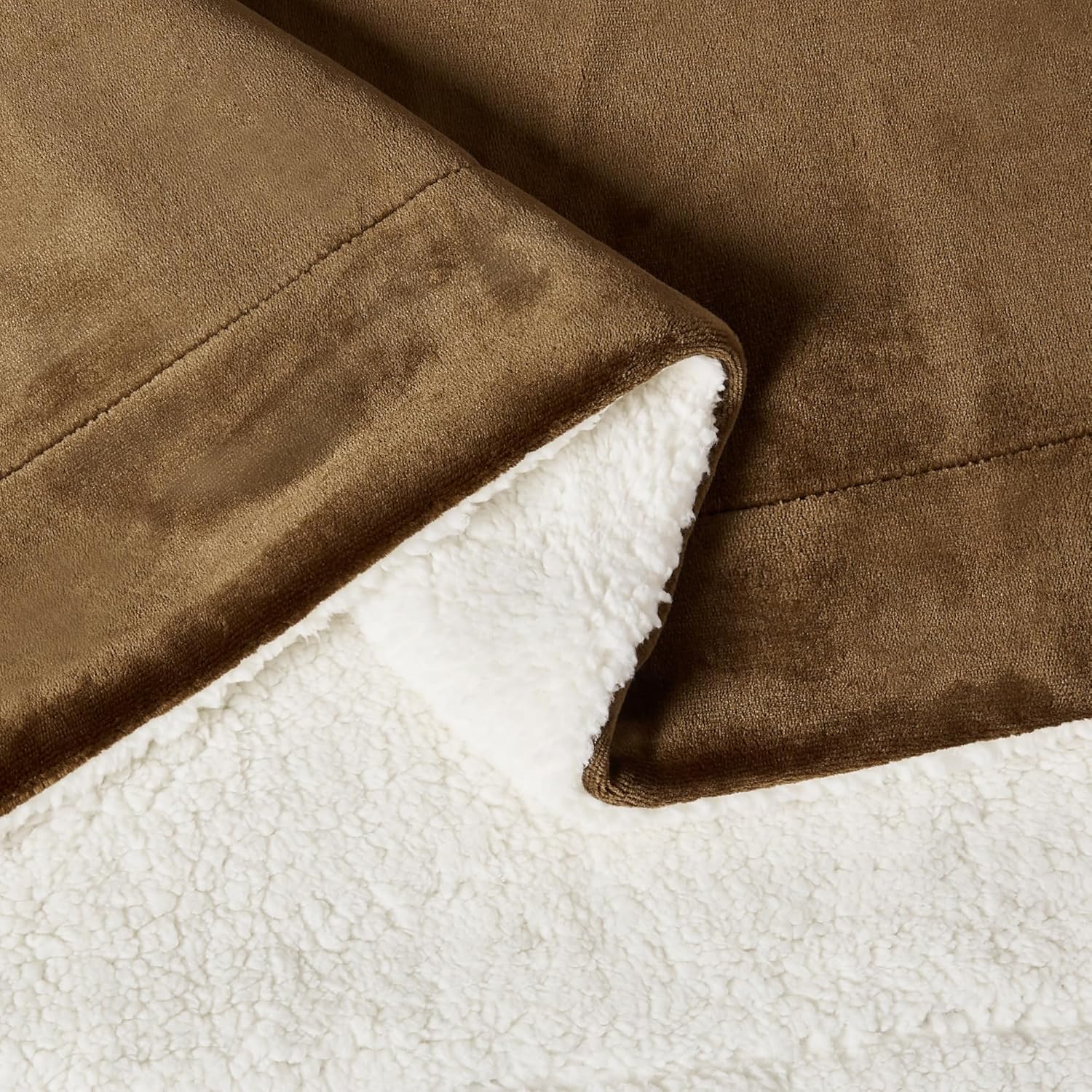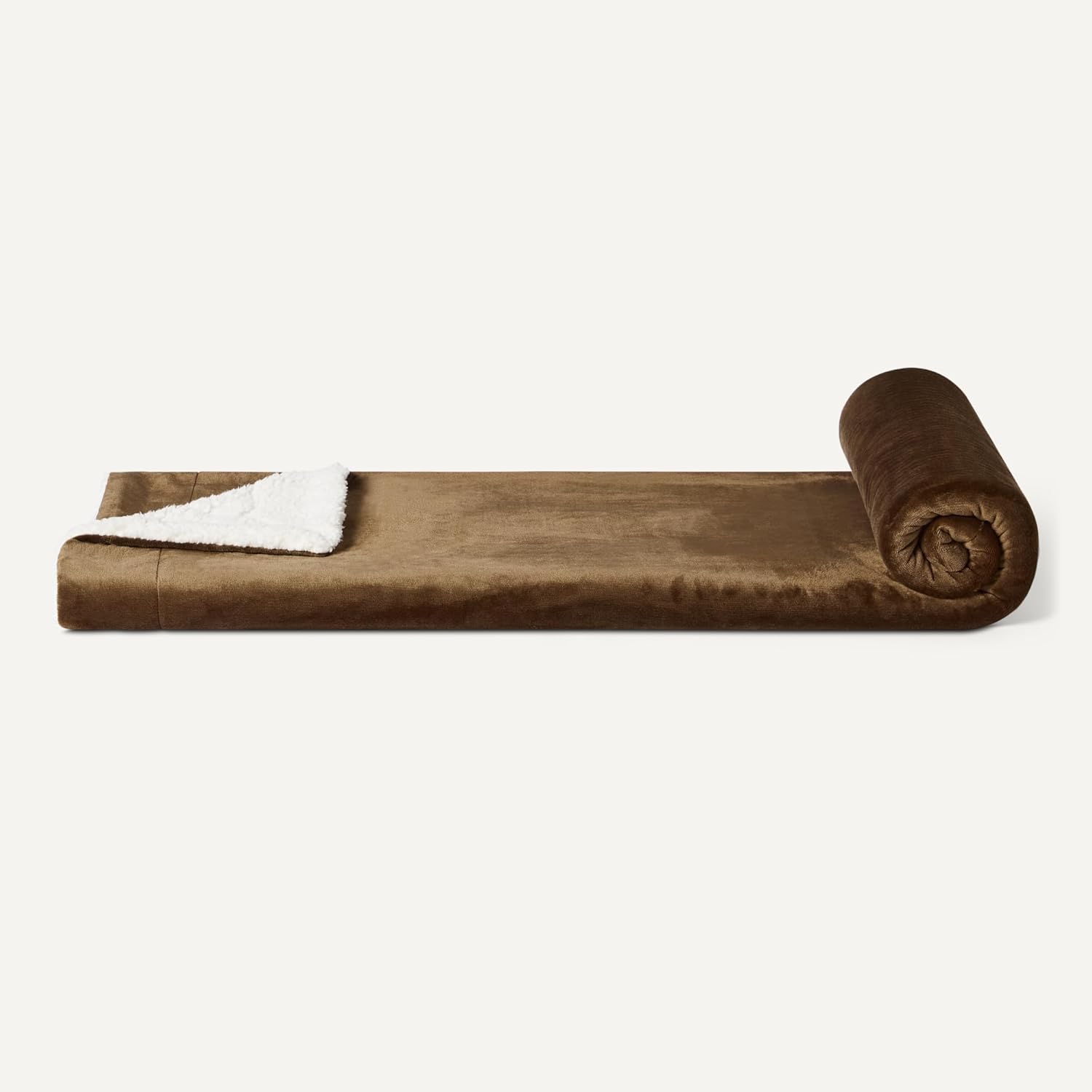 Amazon Basics Reversible Sherpa Throw Blanket, Brown, 50"x60"
