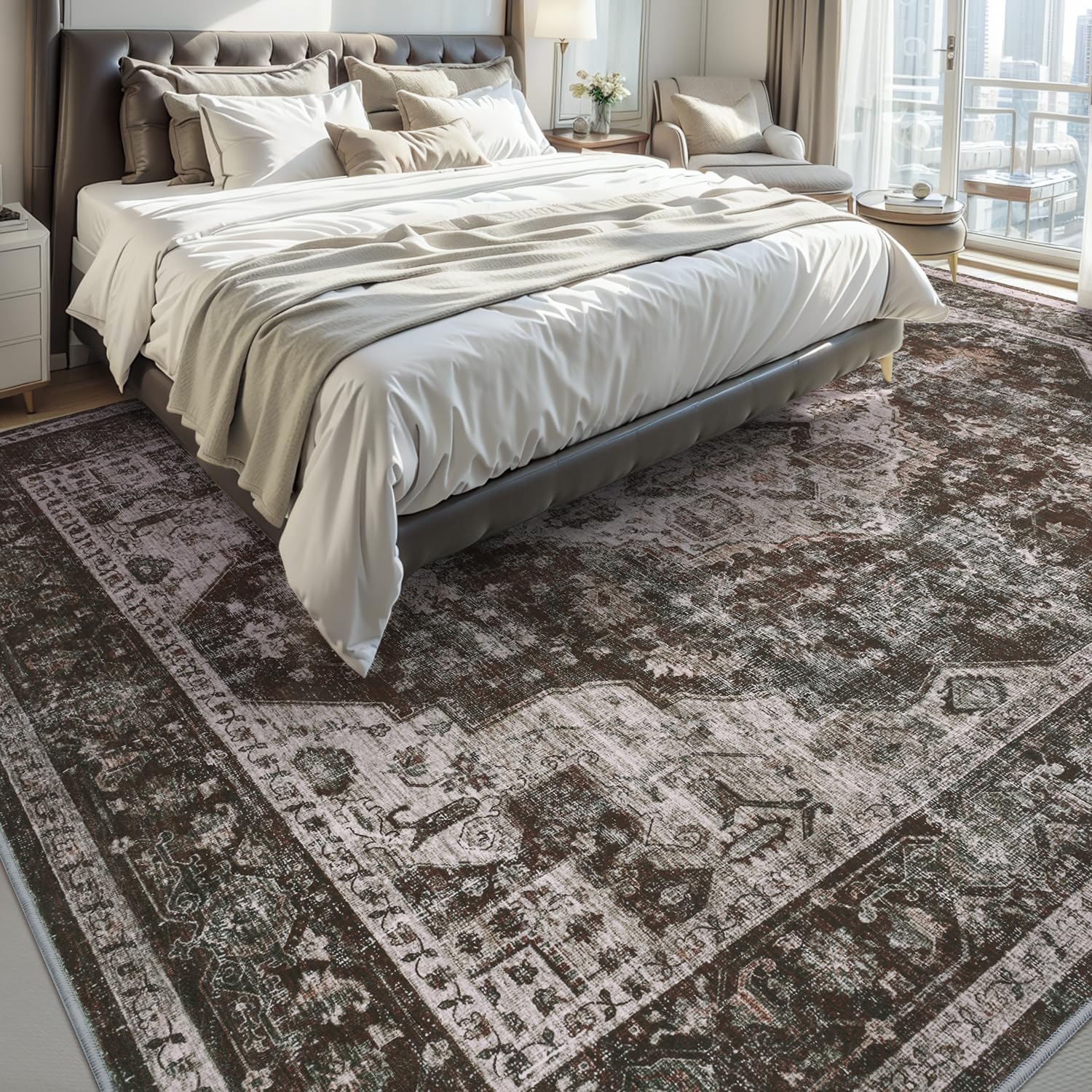 AMOAMI-Area Rug 8X10 Rugs for Living Room-Vintage Soft Brick/Brown Rugs for Bedroom-Non Slip Carpet-Washable Rug for Dining Room Living Room Bedroom Office Under Table