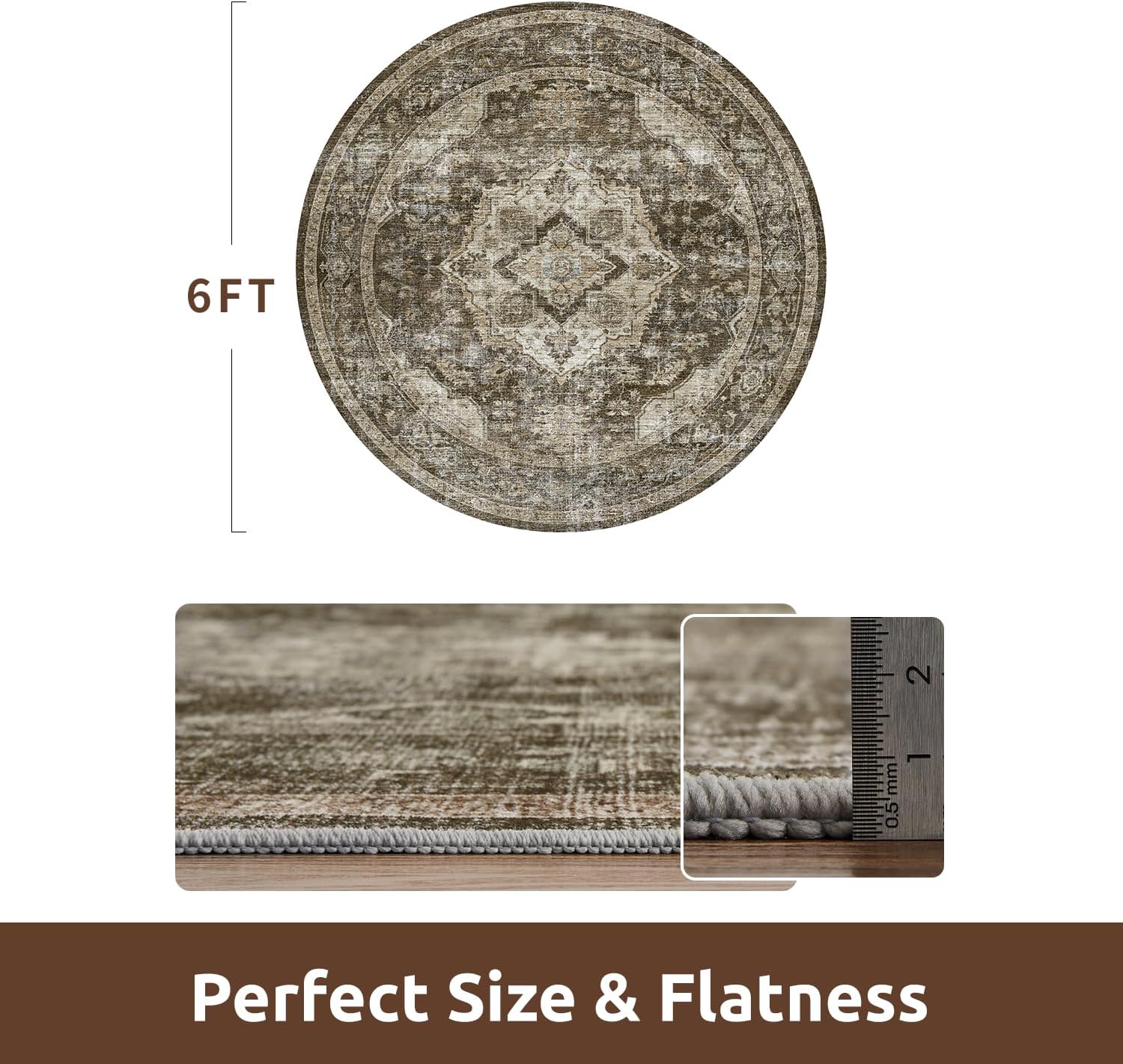 AMOAMI 6FT Round Rug - Vintage Soft Coffee & Brown Rugs for Living Room, Bedroom, Dining Room, Office - Non Slip, Machine Washable