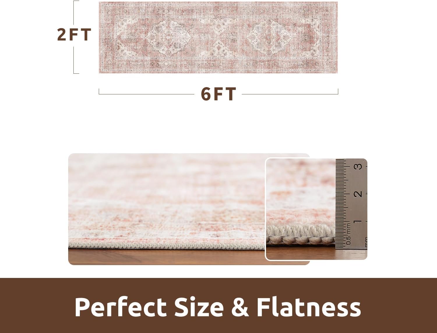 AMOAMI-2X6 Runner Rug-Washable Runners for Hallways-Soft Non Slip Bedside Rugs for Bedroom-Vintage Long Rug for Hallways Entryway Laundry Room Stair Kitchen Bathroom Pink