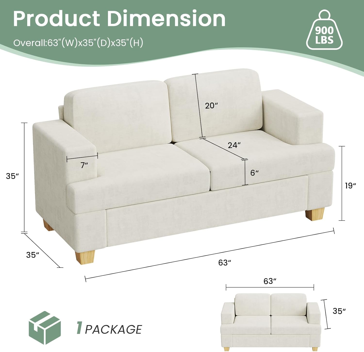 - 【Fluffy Chenille Fabric】Simple design suits any style of apartment living room, bedroom, creamy couch brings a soft touch like living room cloud sofa. This living room sofa decorates your home with warmth and calmness