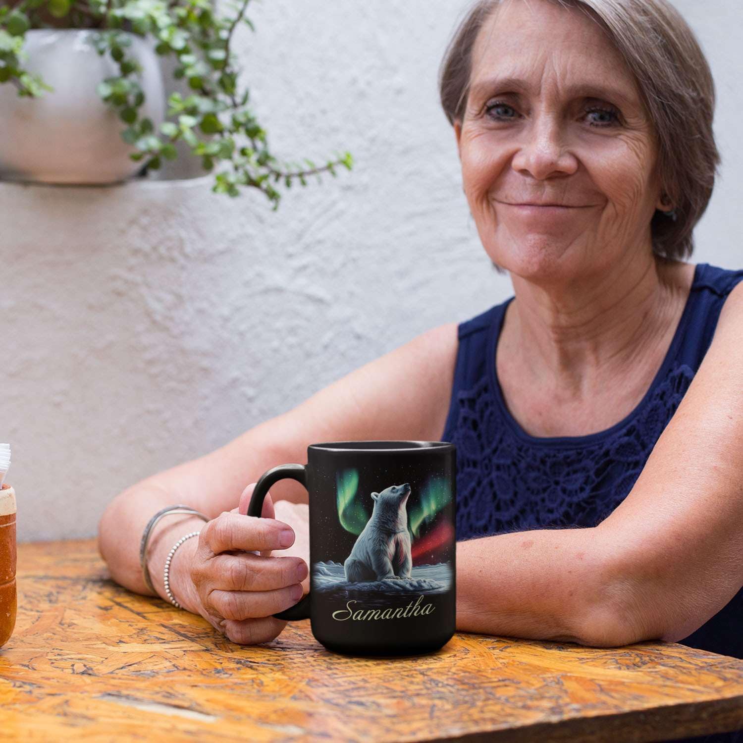 - đăUNIQUELY PERSONALIZEDăExperience the magic of the Arctic with this Custom Enchanted Arctic Landscape Design Cup. Featuring an adorable polar bear beneath the captivating northern lights, this black ceramic mug gift for nature lovers and animal enthusiasts. Click "Customize Now" to add a name and create a unique mug gift for her. Available in 11oz and 15oz sizes, this personalized mug is a unique keepsake that will be cherished for years to come.