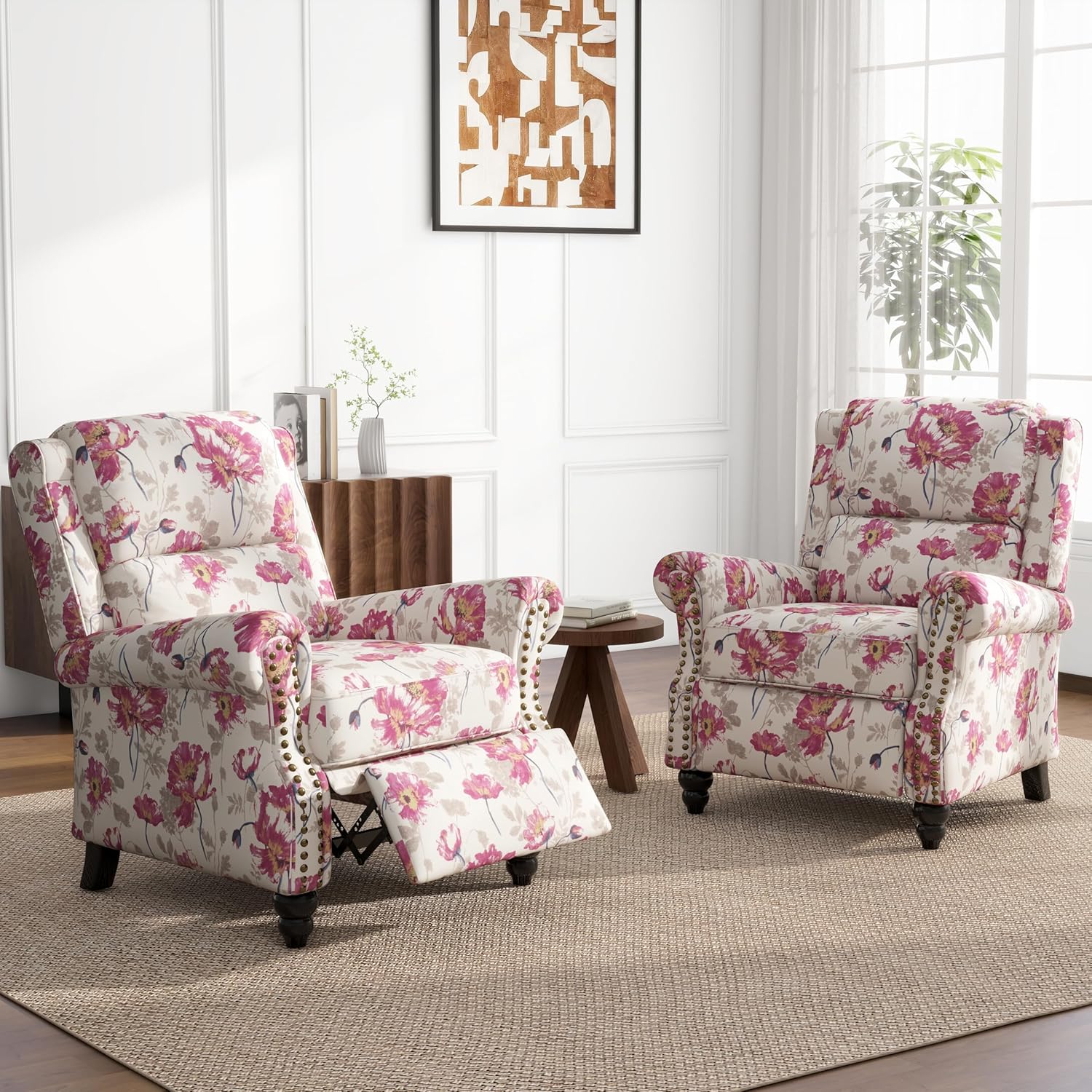 UIXE Pushback Recliner Chairs Set of 2, Fabric Armchair Push Back Accent Chair, Rivet Trim Club Chair Home Theater Overstuffed Single Sofa Reading Seat for Living Room, Pattern