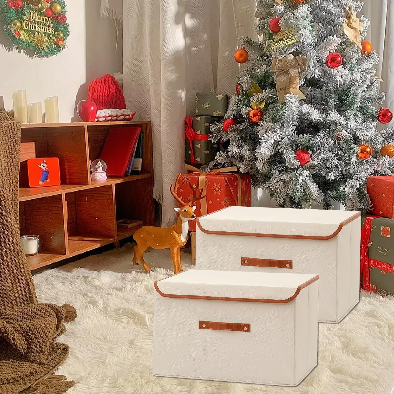 Tuza 4 Pack Large Fabric Storage Bins with Lids, Foldable Storage Boxes with Lids for Organizing, Decorative Storage Boxes with Handles for Home, Bedroom, Closet, Office(Khaki, Extra Large)