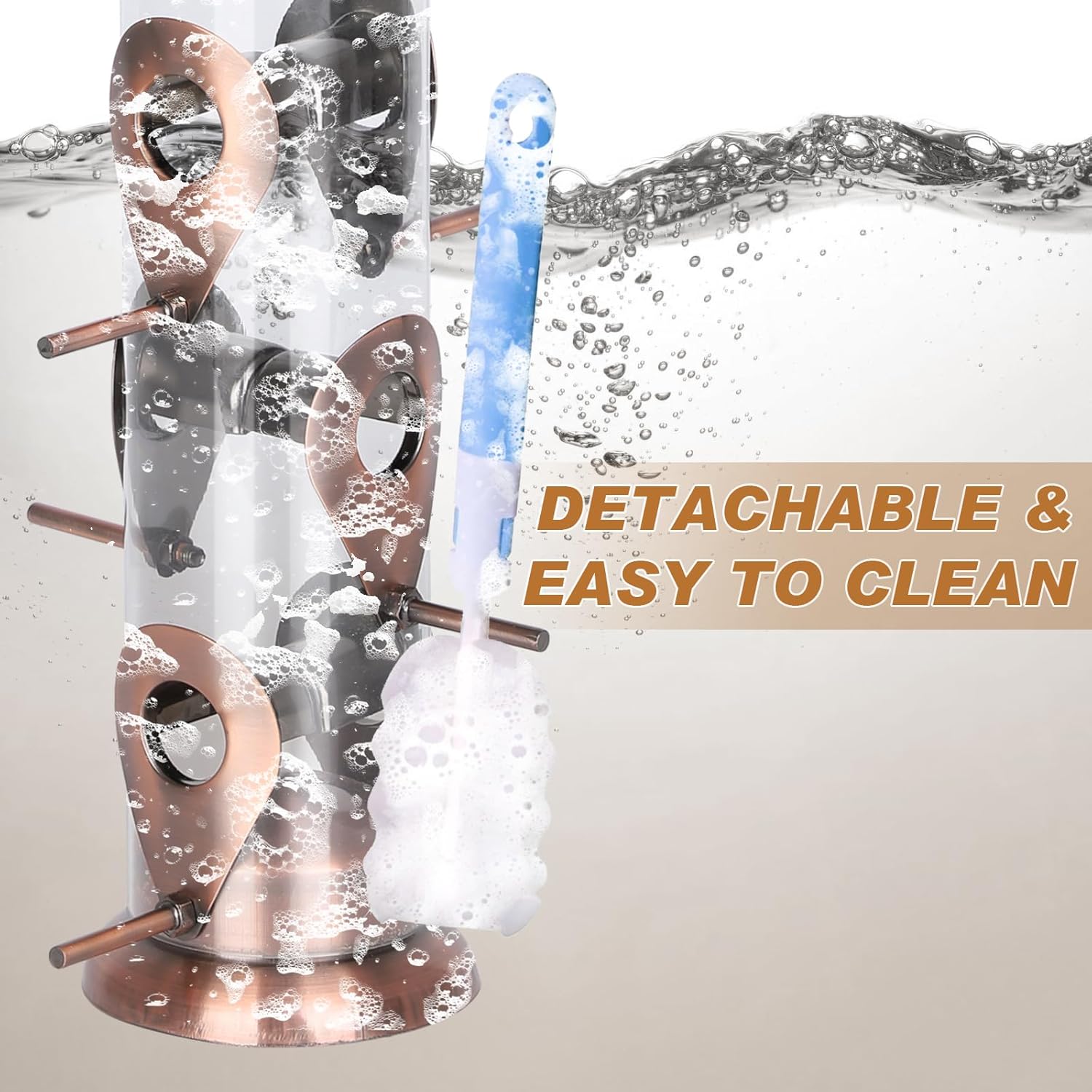 - 【Six Metal Feeding Ports】During various weather conditions and food shortages, wild birds require additional energy and nourishment to survive. With six feeding ports and perches, multiple birds can feed at once, providing abundant food for them and attracting more birds to your garden.