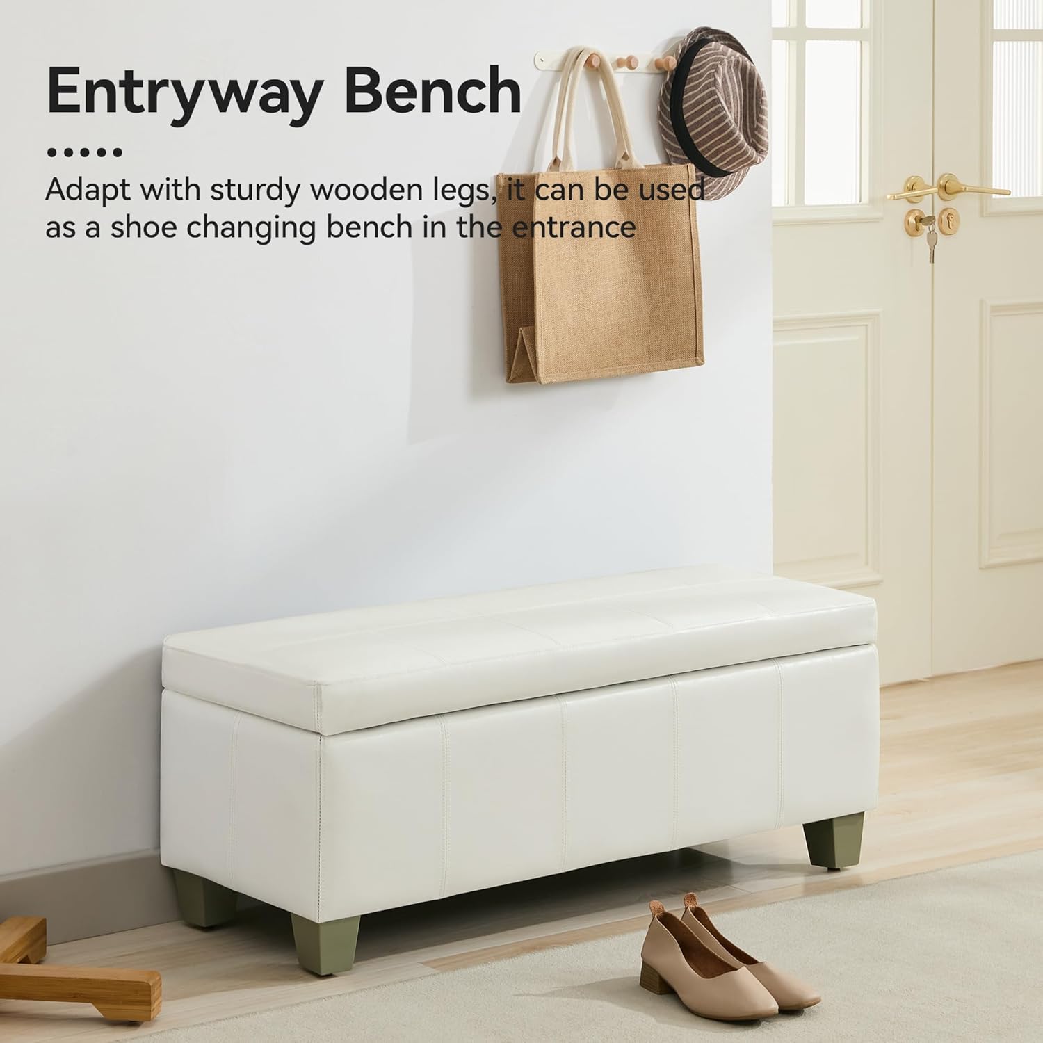 - VERSATILE USE: The bench can be used as a footrest at the end of bed, a shoe bench in entryway, an extra bench when guests or friends come, as a stylish coffee table in living room or an extra seat in your locker room. Its multifunctional design makes it a practical addition to any space.