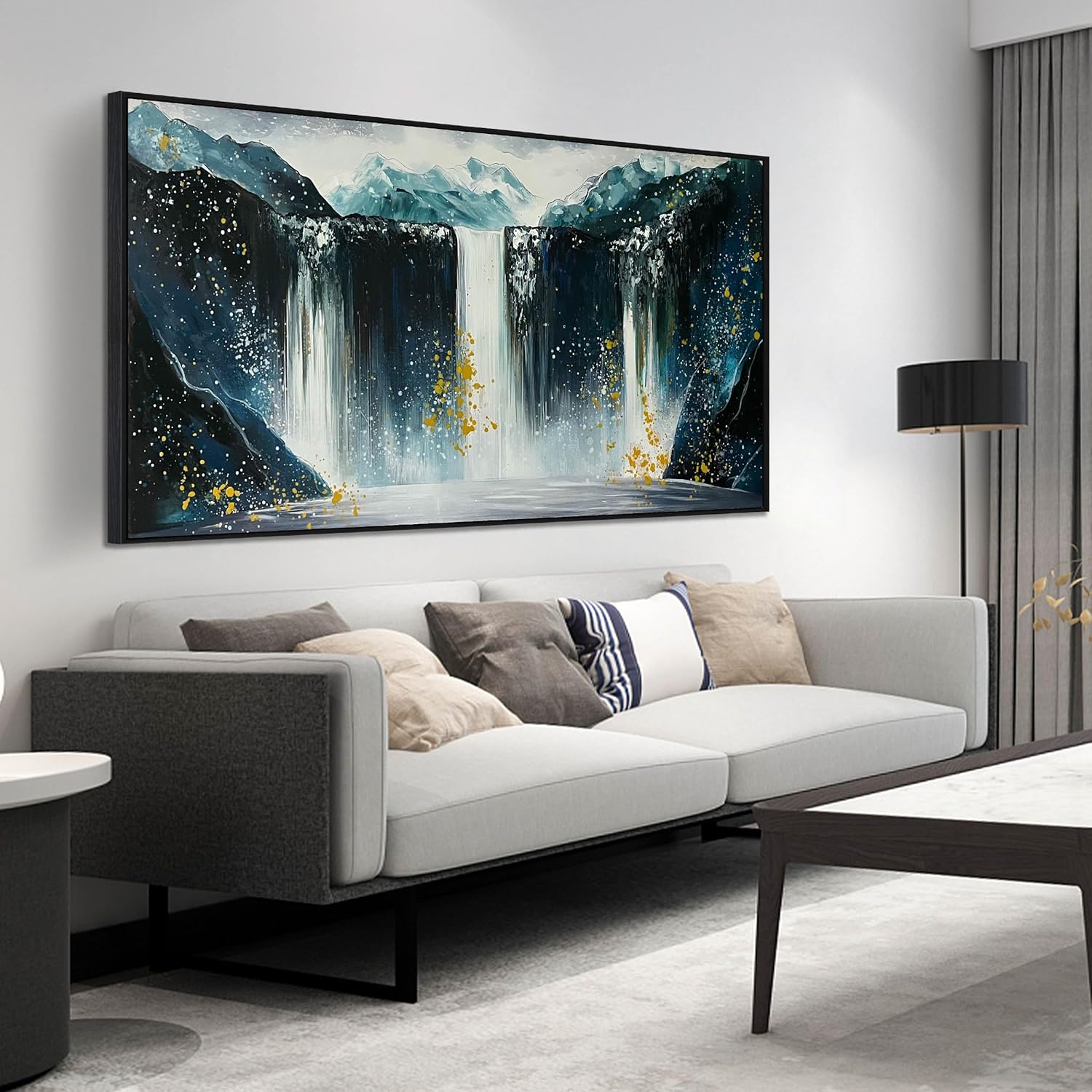 - 【Canvas Mural Size】Titled "Waterfall" The size is 59" x 29". Since each painting is hand-painted, the actual painting may differ slightly from the product image. Due to different monitor brands, the actual wall painting color may be slightly different from the product picture.