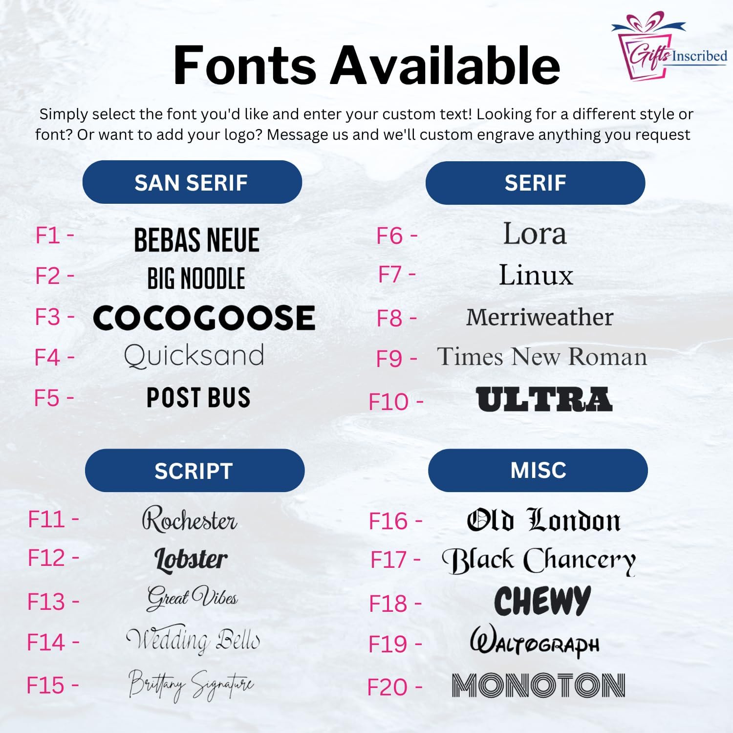 - Personalized Engraving – Create a custom whiskey decanter with permanent laser-etched designs. Choose your preferred font and add your name, initials, and date for a truly unique and memorable gift.