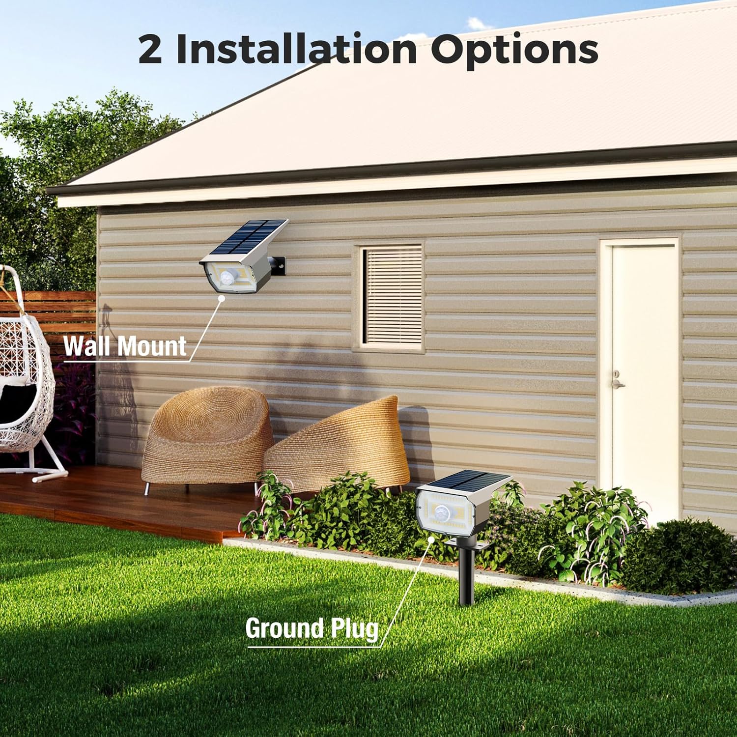- Easy to Install & 2-in-1: The solar spotlights support both ground insertion and wall mounting installation. The installation is simple and convenient, with no need for wiring or power support. The product not only features various design styles such as minimalist and modern, but also offers two installation methods to better meet the different needs of consumers