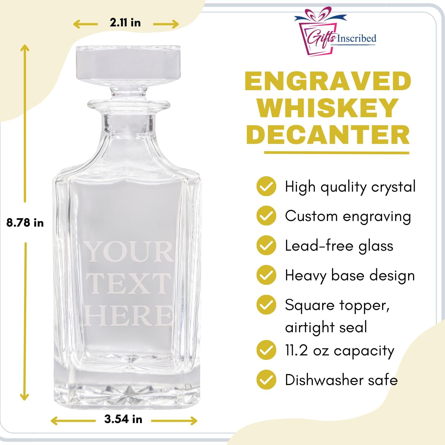 Gifts Inscribed Custom Text Whiskey Decanter & Glasses Set of 2 – Engraved Glass Cups Drinking Glasses Set of 2 – Personalized Whiskey Glasses Drinking Set – Customized Whisky Glassware Gift for Him
