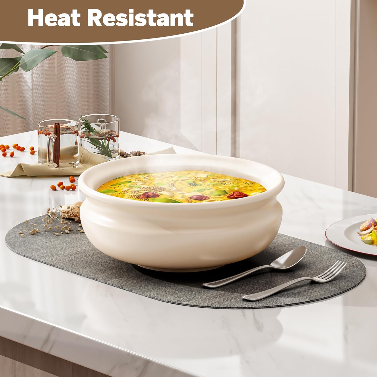 - Heat Shield Protection: Our dining table placemats are heat insulation, ≤176℉(100℃), the placemats will protect your table from from leaving a white heat mark. DOLOPL tablemats is large enough to accommodate your plate and sauce, preventing sauce from spilling outside the placemat. The size of the placemat is 13.8 '' x 21.6 ''