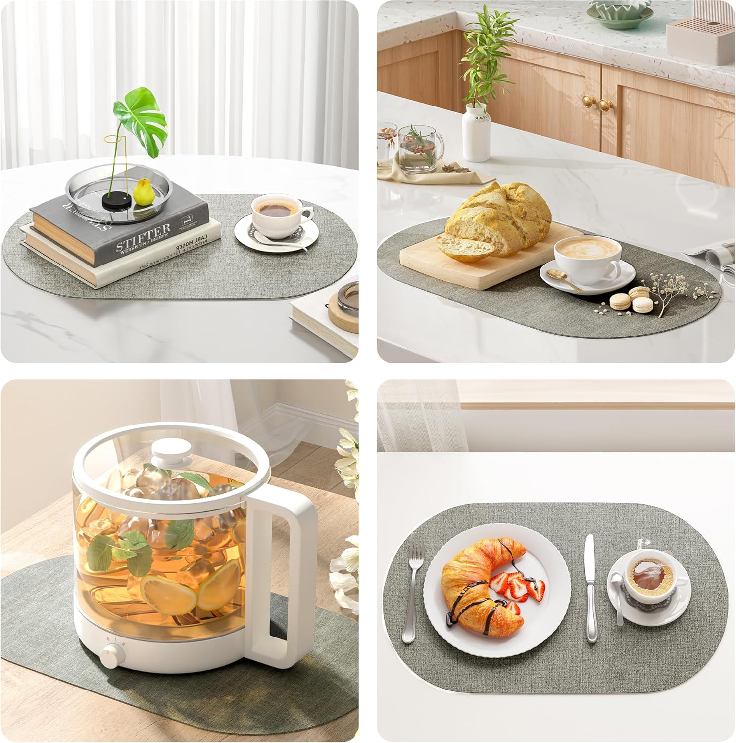 DOLOPL Oval Placemats Set of 6, Gray Faux Leather Heat Resistant Table Mats - Anti Slip Table Place Mats, Washable Wipeable Outdoor Placemats for Kitchen Dining Room Table Decorations(13.8"x21.6")