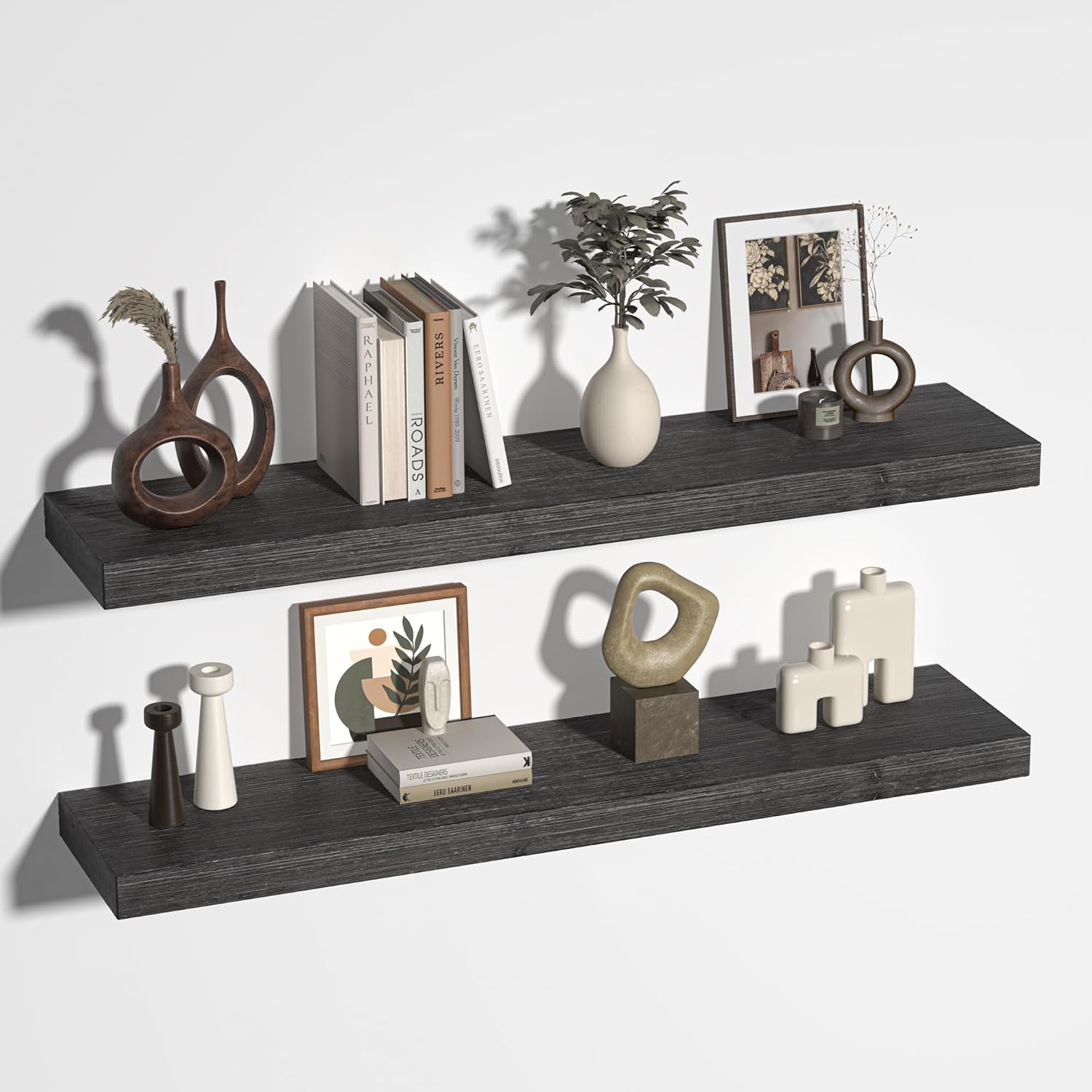 Floating Shelves for Wall, USA-Sourced Fir Wood 36 Inch Wall Shelves Set of 2, Natural Rustic Solid Wooden Floating Shelves Wall Mounted, Nursery Book Storage Shelf, Display Shelf for Bathroom