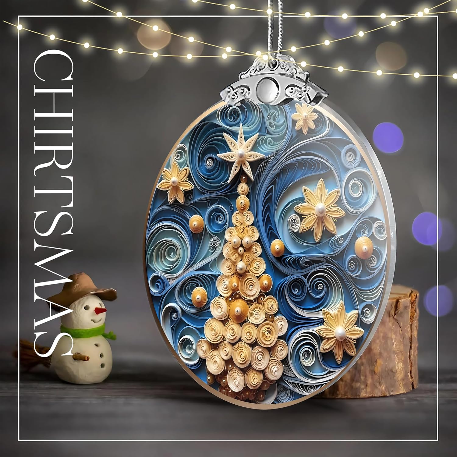 2025 Christmas Ornament, Stained Glass Effections, Christmas Tree 4 Inch Acrylic Ornament Art, White Elephant Gifts Car Interiors Decors, Christmas Decor (Quilling Tree 2)