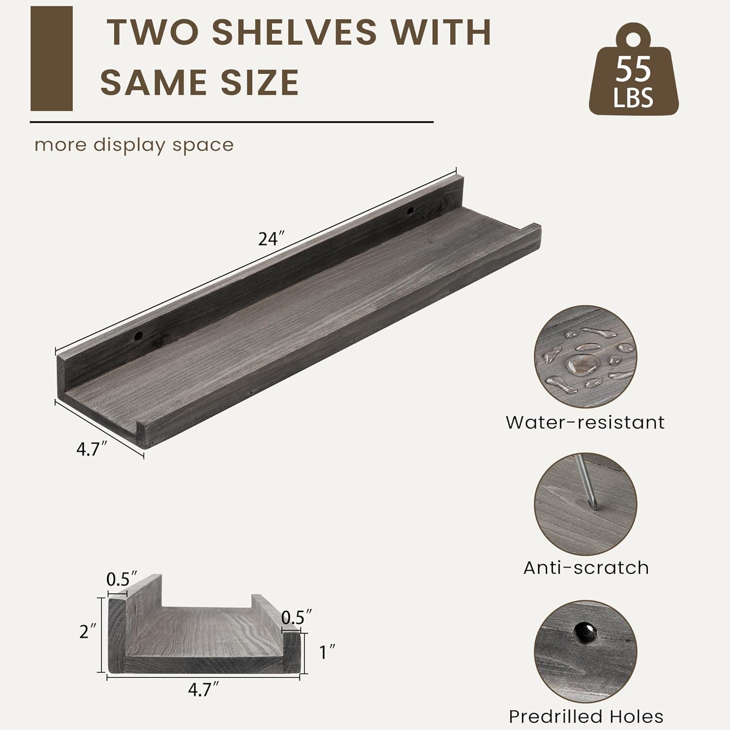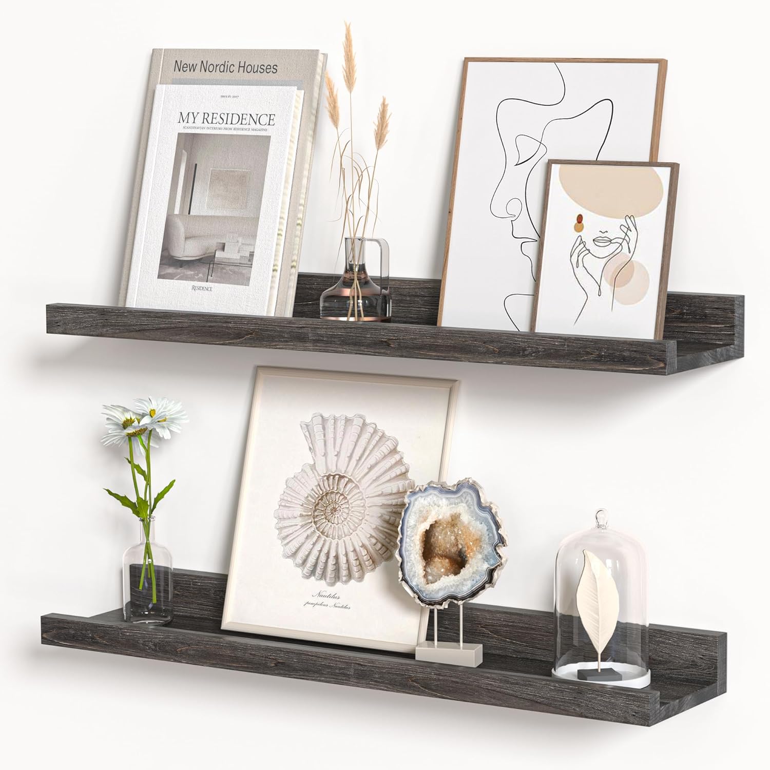 • Quick and Easy Installation: With pre-drilled holes, necessary hardware, and easy-to-follow instructions, our picture ledge shelves are a breeze to install. Each set even comes with a mini level for perfect alignment. Put them up in minutes and start decorating right away!