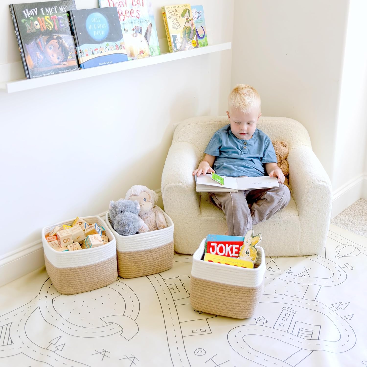 - Safe, Natural Cotton Organizer Bins: Crafted from the highest quality material in the market, our storage bins are oh-so-sturdy (and cute) and ready to take on little humans. They’re 100% safe, so you can rest easy if teething toddlers take a nibble.