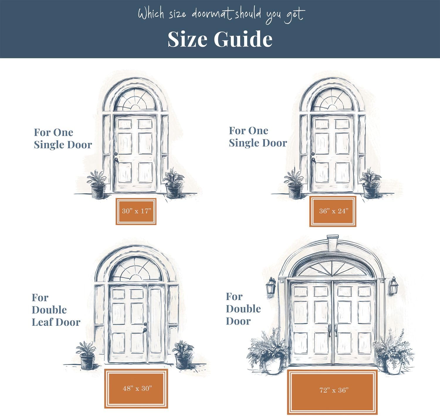 - The Perfect Size - Measuring 72 x 36 inches, our welcome mat outdoor entrance rug is just the right size for any entryway. It’s big enough to accommodate two people standing side by side, yet small enough to fit in front of a single door without overwhelming the space. It’s the ideal front door mat outside entrance rug for any home or office.