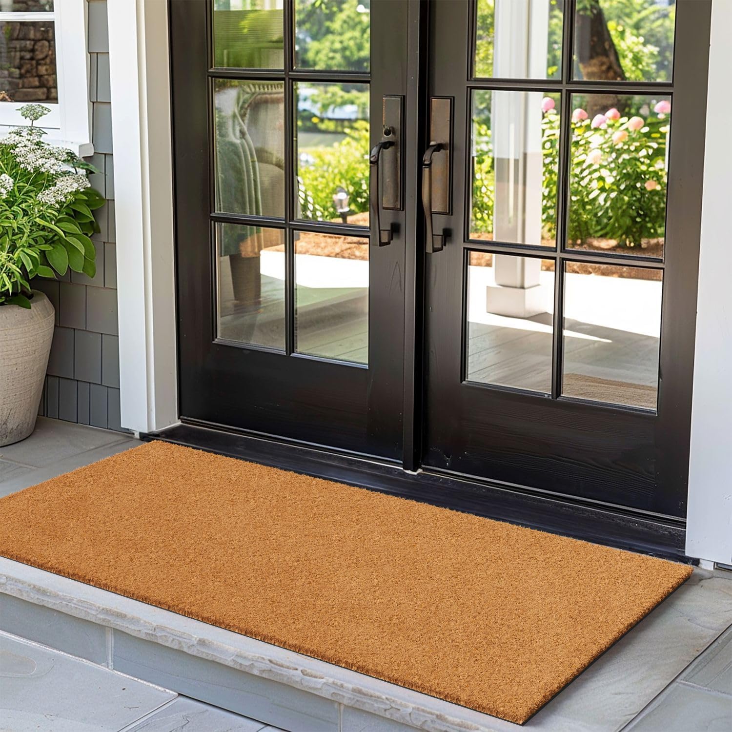 Barnyard Designs Natural Coco Coir Heavy Duty Backing Doormat - Large Cute Non-Slip Front Door Welcome Mat for Outside Entrance or Porch Entry, Brown (36x72, Plain Brown)