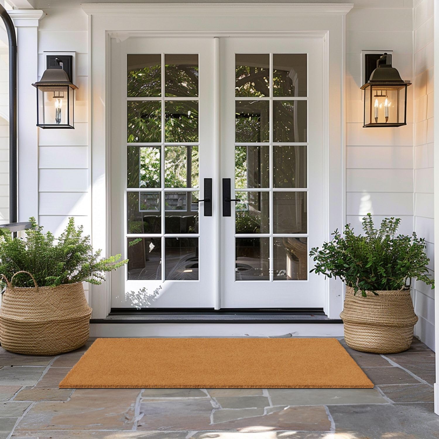 - Say Hello in Style - Welcome guests into your home with our minimalist plain brown doormat; it’s the perfect indoor or outdoor welcome mat for front door. The doormat’s blank design without text or lettering is perfect for layering over a bold design and goes perfectly with any style décor.