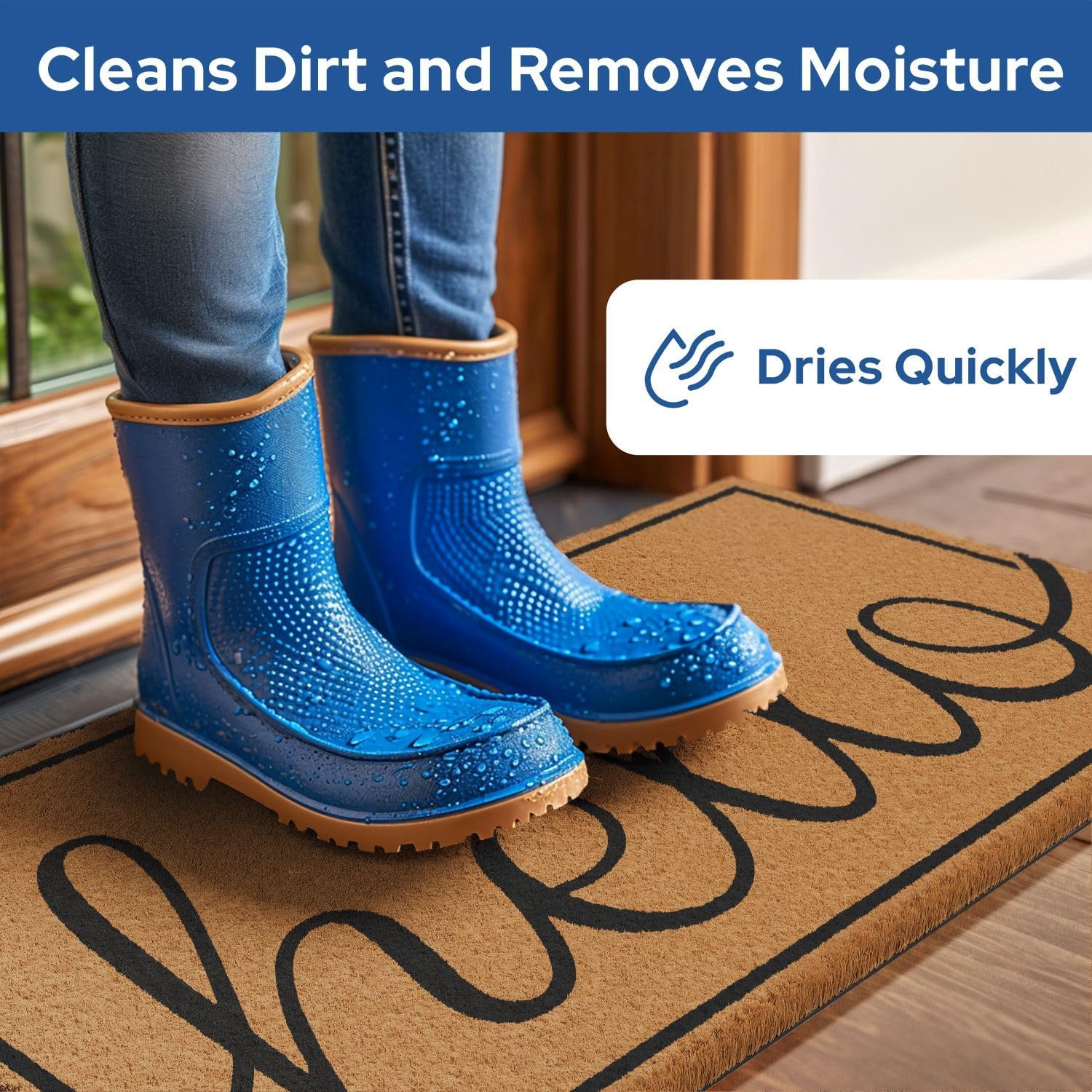 - Slip-Proof - Our non-slip rubber backing keeps the welcome door mat securely in place, preventing slips and falls. Whether you have a concrete, stone, or wooden porch, our exterior door mat outside entrance rug will stay put and keep your visitors safe.