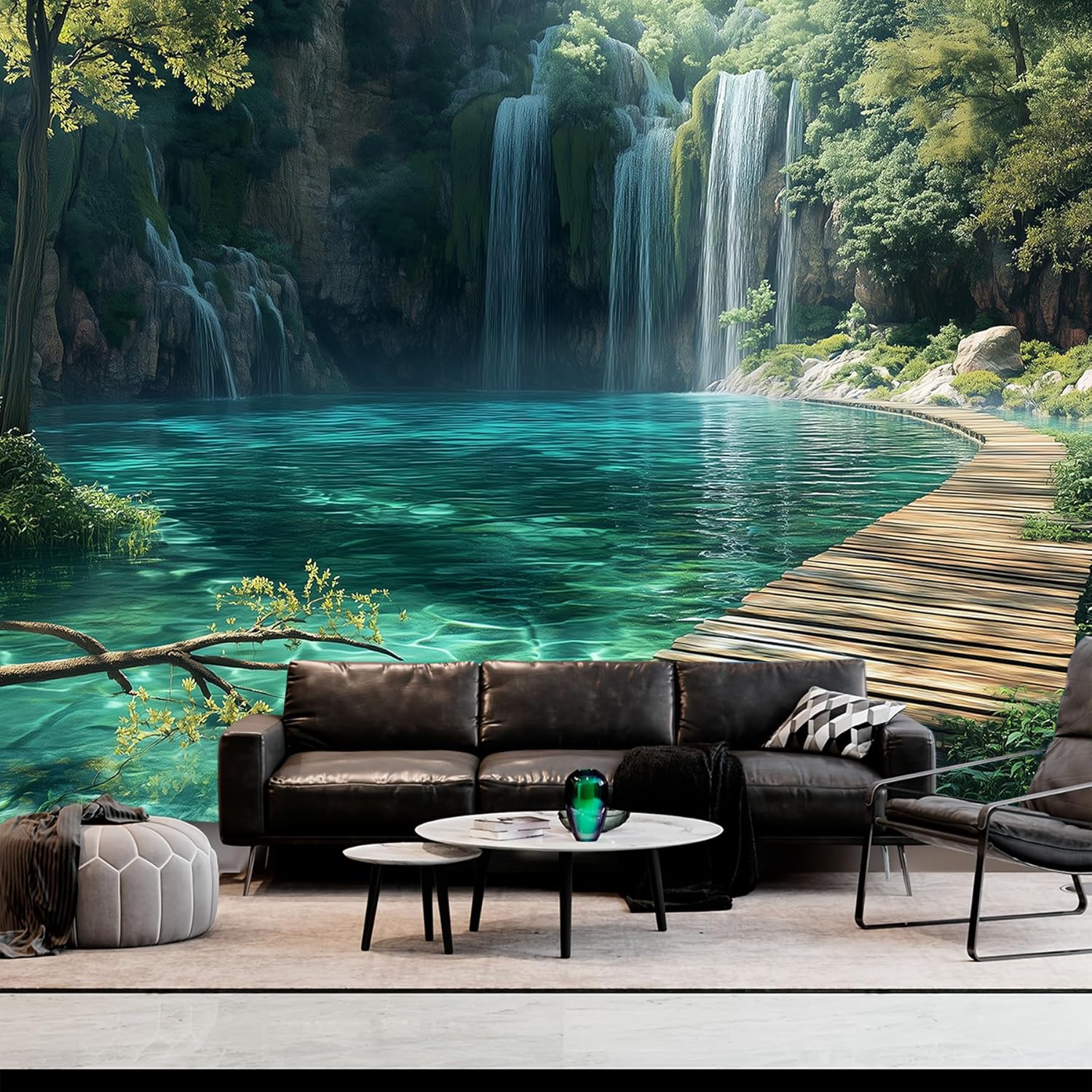 BSFHH Nature Tapestry Forest Tree Sea Cave Wall Hanging, Stream Through Rainforest Landscape Wall Art Tapestry for Bedroom Living room (Waterfall, 90"×70", Unframed)