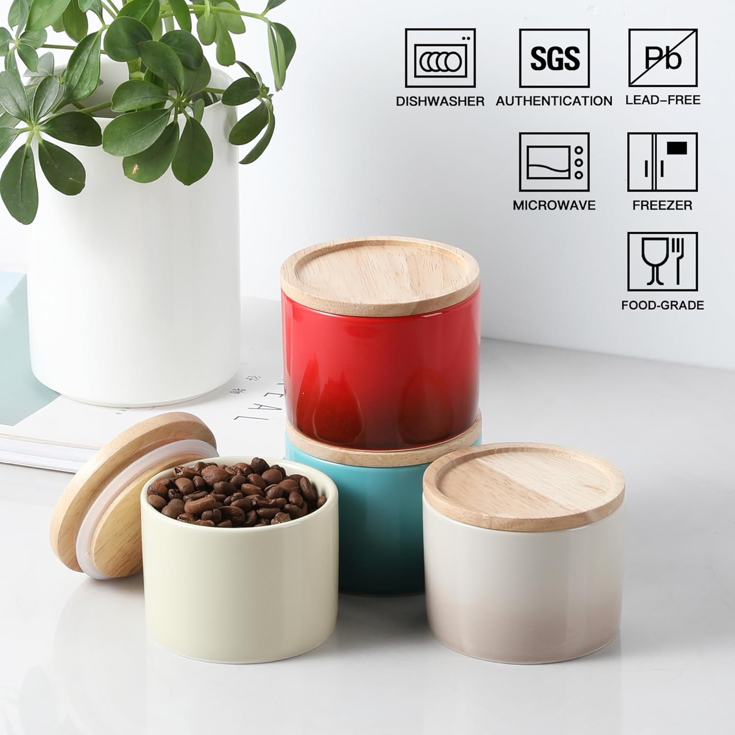 Sweejar Kitchen Canisters Ceramic Food Storage Jar, Stackable Containers with Airtight Seal Wooden Lid for Serving Ground Coffee, Tea, Sugar, Spice and More - 5 Fl Oz(Gradient Gray)