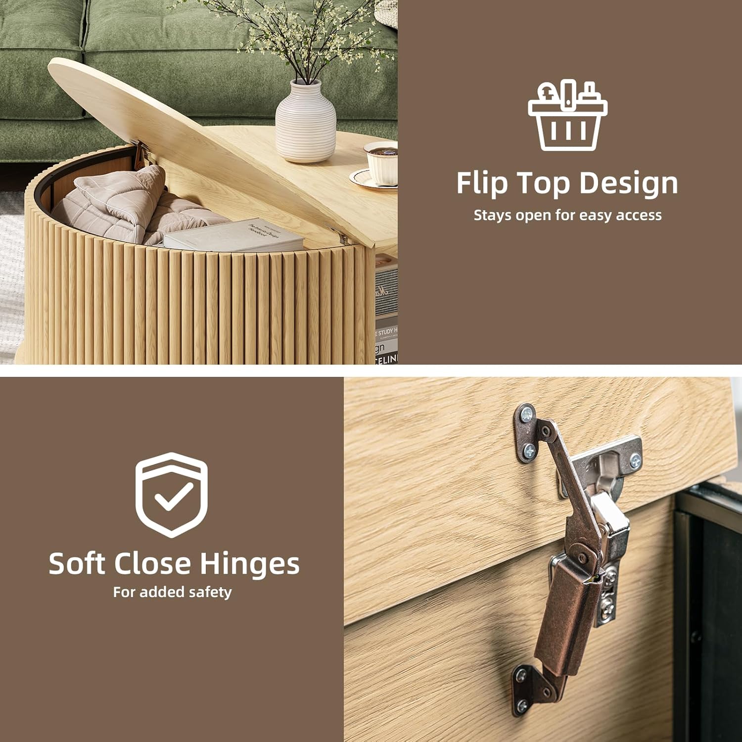 - Stylish and Practical: The round coffee table features lift top design,allowing you to work,write or dine comfortably on the sofa.Its mid-century modern style adds a retro feel to any space