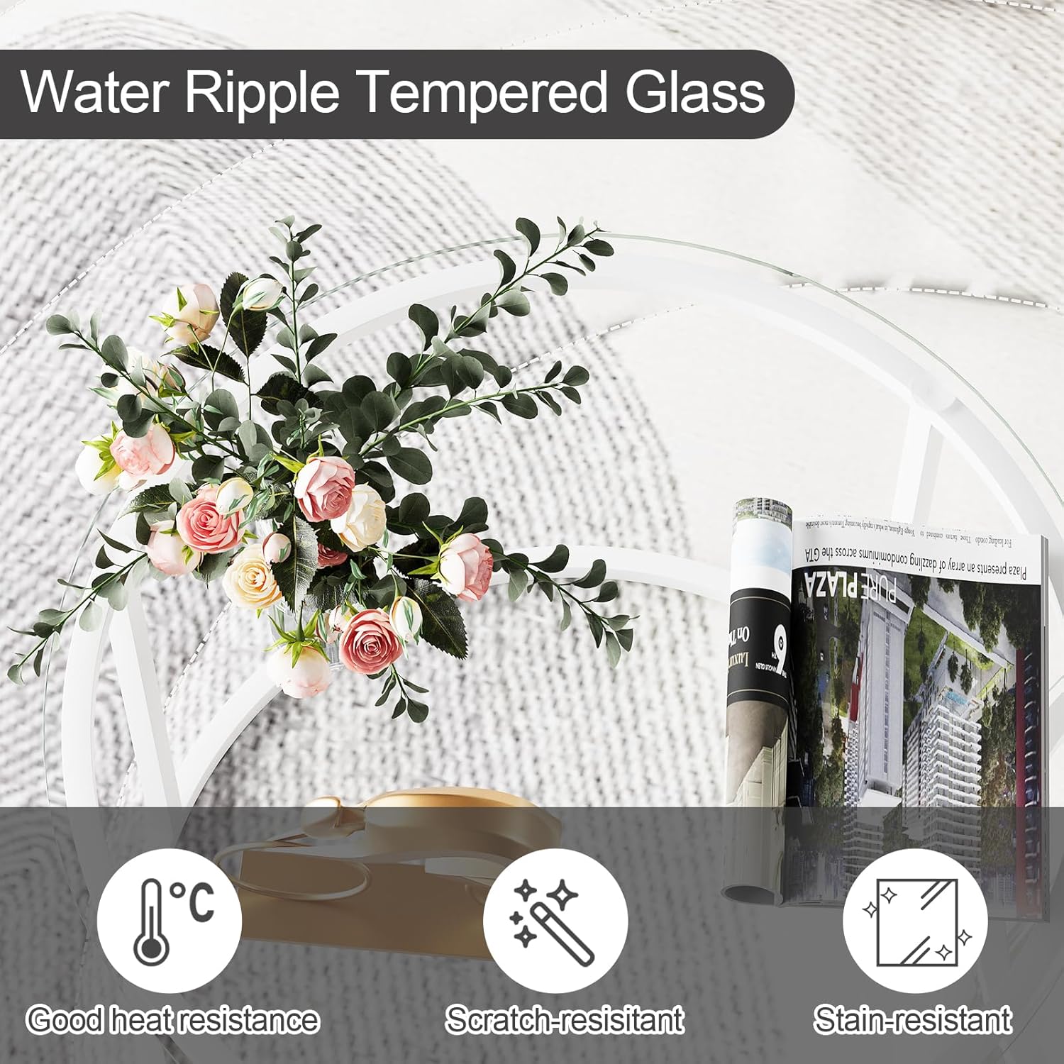 - ✔Modern & Minimalist: Glass table top with metal frame bring your home a clear and elegant style. The elegant and industrial style bring a unique experience to your living space. giving your visitors a good impression