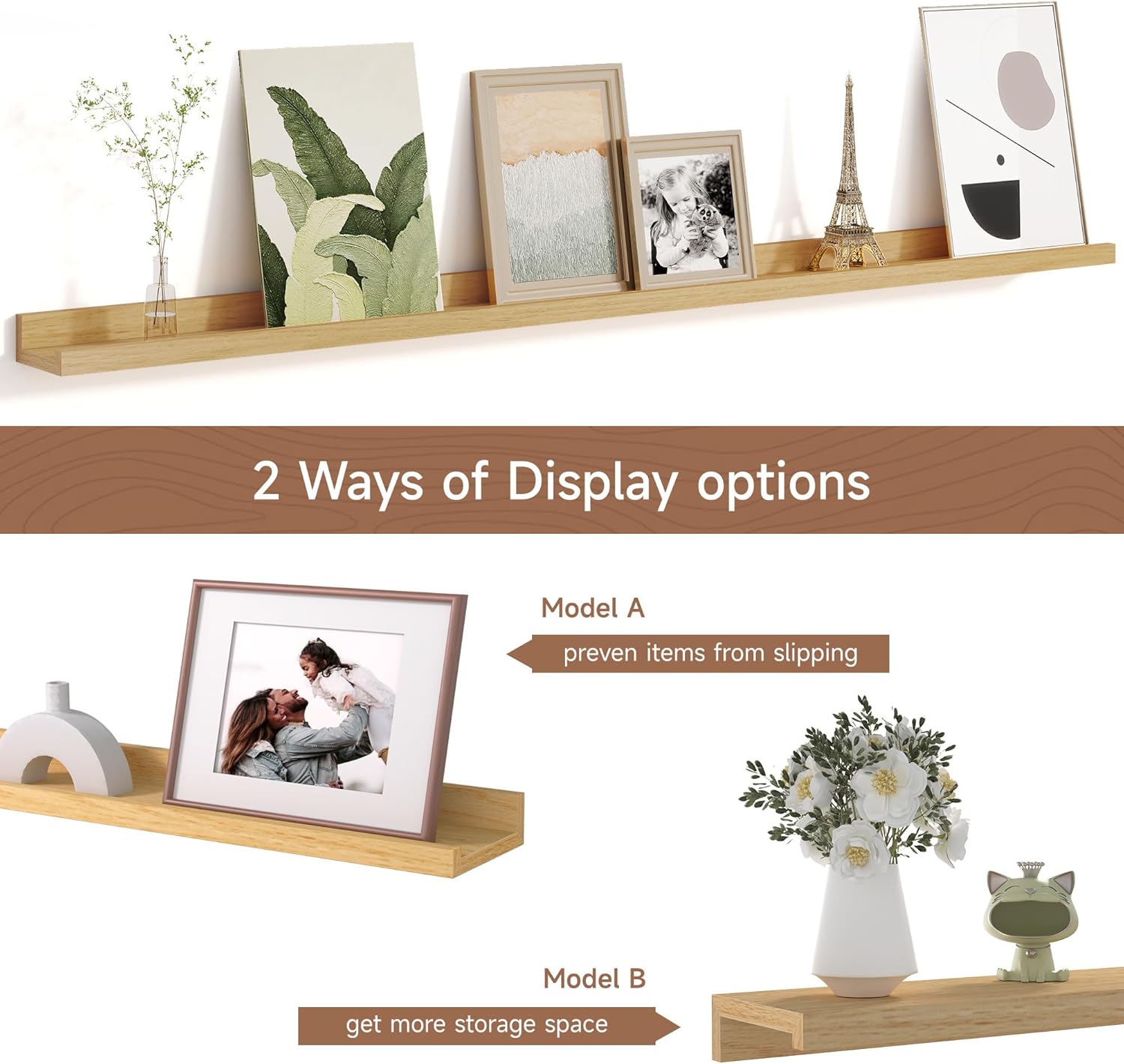 - MEMORIES SHOWCASE SHELF: Do you have a lot of memorable photos, but don't know how to display them, Fun picture shelf for wall with ledge, picture ledge shelf, picture ledge, photo ledge shelfMemories picture ledge shelves (especially in large sizes) are perfect for you to display them! With our hanging racks, you can store and display different types and sizes of photo frames in one place without worrying about