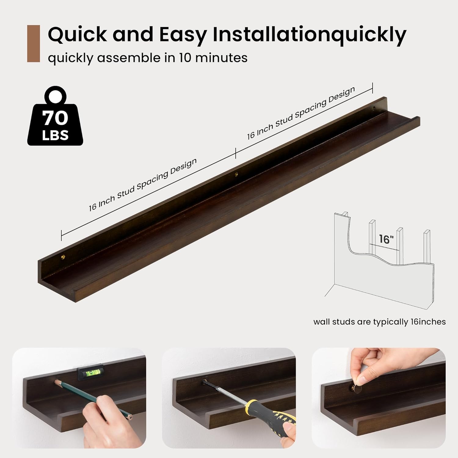 - Chic Minimalist Design: Solid pine wood picture ledge shelves available in multiple colors and sizes, these picture shelves complement any decor, from modern to farmhouse. Use them alone or in a gallery-style arrangement to create a stylish focal point