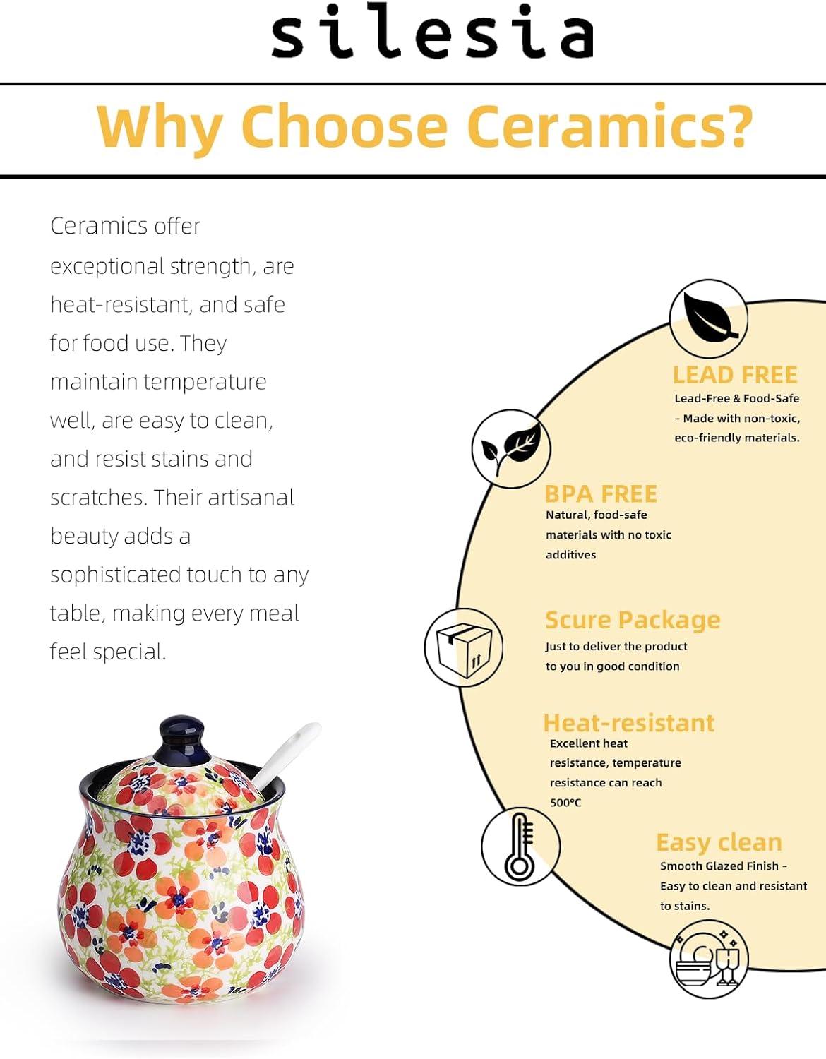 - Beautiful Hand-Painted Design: The sugar bowl features a unique, hand-painted design, showcasing vibrant colors and intricate patterns. This artisanal touch adds charm and character, making it a perfect decorative piece for your kitchen or dining table. Each piece is slightly different, reflecting the craftsmanship behind it