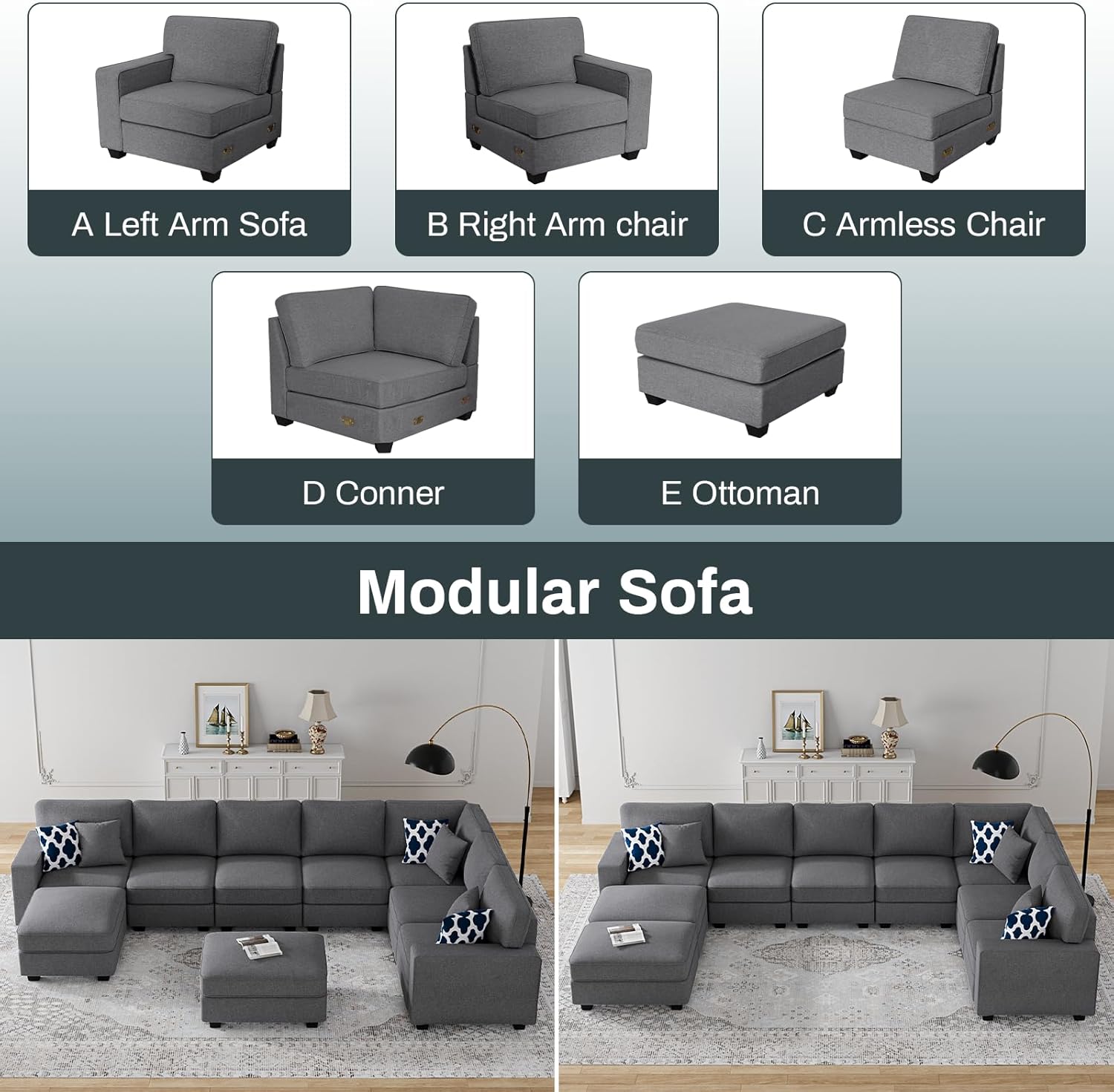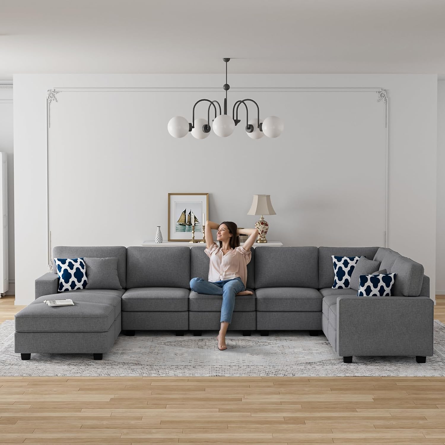 - 【Ergonomic Design】The backrest of the couches for living room perfectly fits the human body curve, the armrests are wide and at the right height, and the living room sofa as a whole is ergonomically designed to give you comfortable support. The modular sectional sofa is paired with multiple multi-functional small pillows, allowing you to relax anytime, anywhere. The oversized couch has a weight capacity of up to 660 pounds to give you stable support.