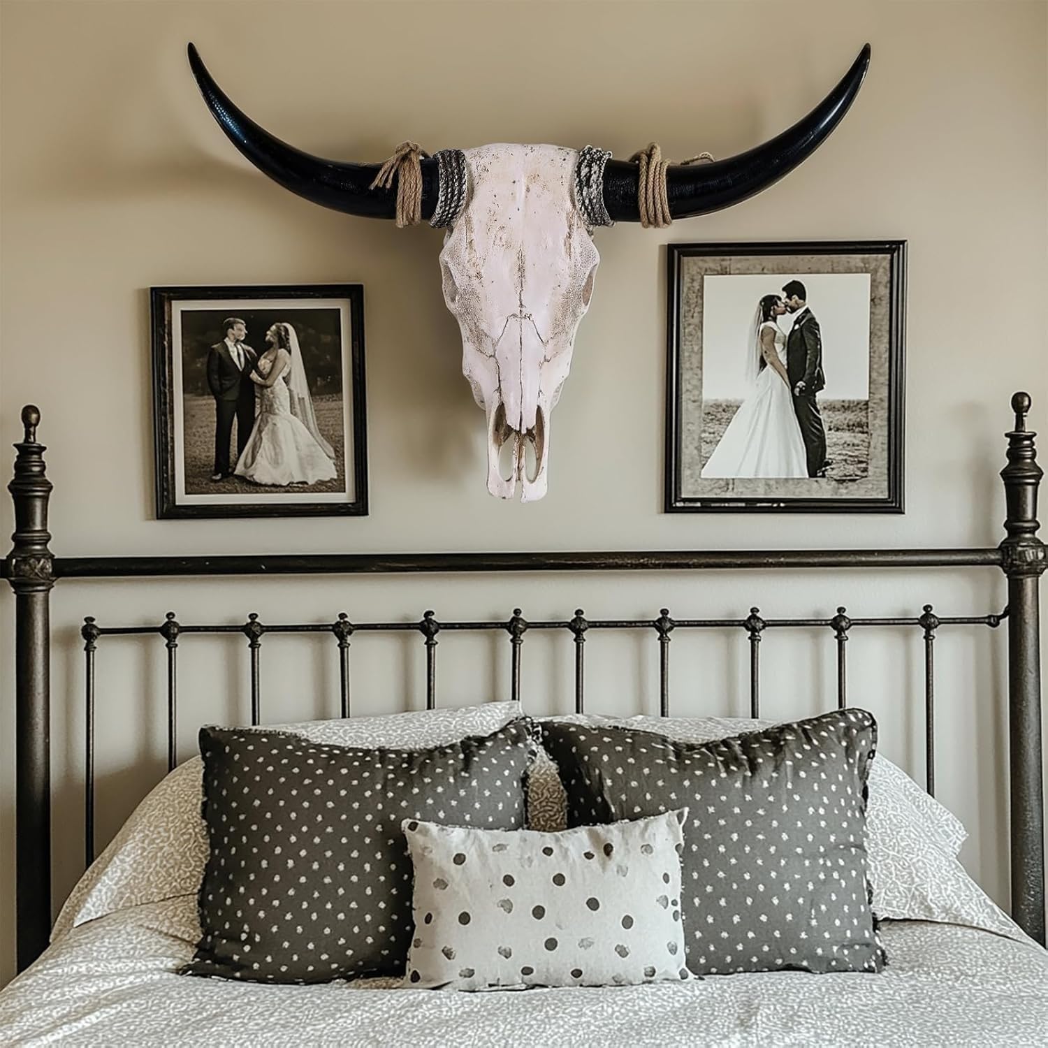 - 🐮 Cow Skull Size ------ This Realistic cow skull wall decor 31 Inches Long, 24 Inches Wide, 8 Inches High/79cm Long, 62cm Wide, 21cm High, Weight is about 8.8 pounds/4KG.