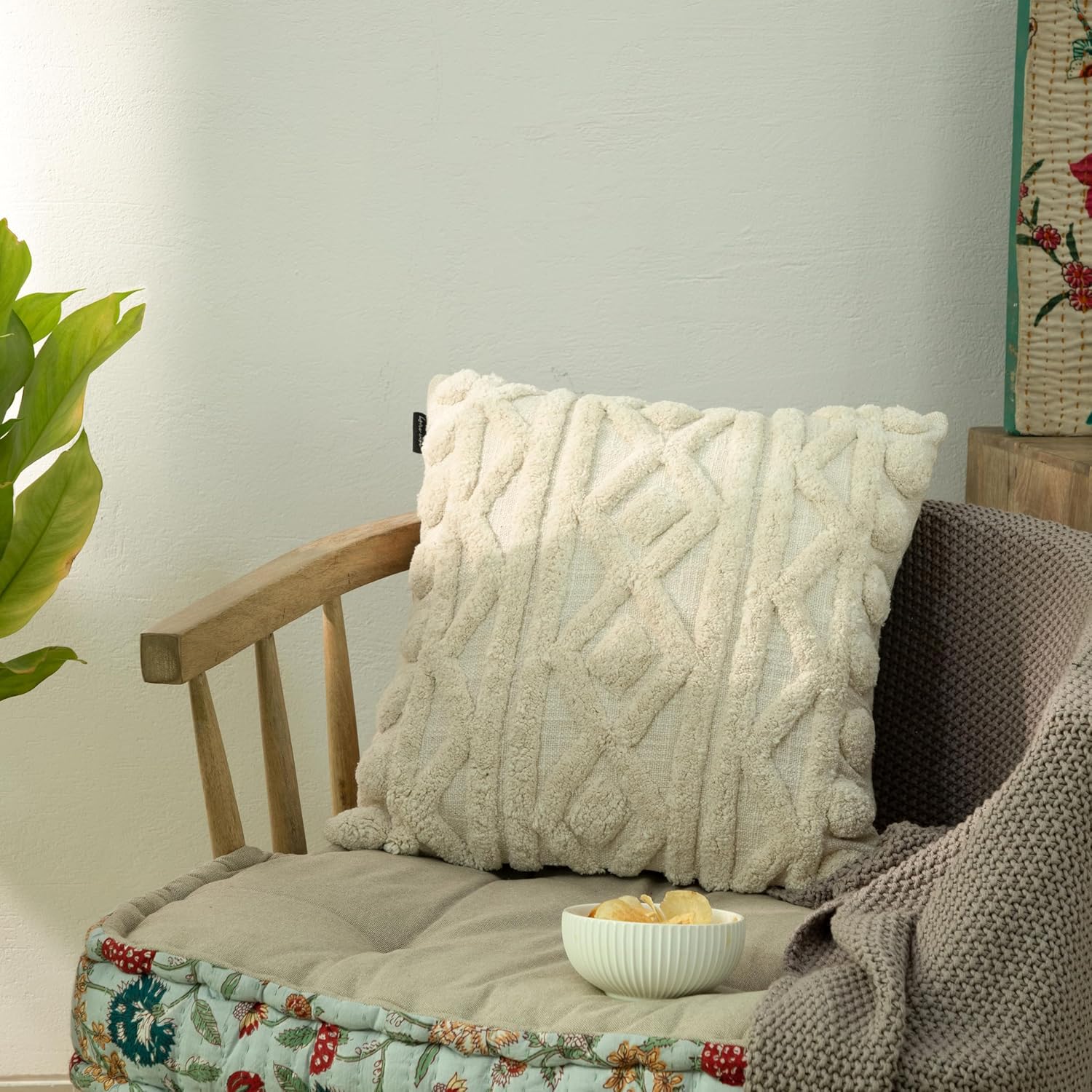 Tufted Boho Pillow Covers 18X18 Inch Throw Pillow Covers Decorative Cushion Cover Exquisitely Crafted with Hand-Finished Tuft Farmhouse Pillow Case for Couch Sofa Bed Living Room Bedroom