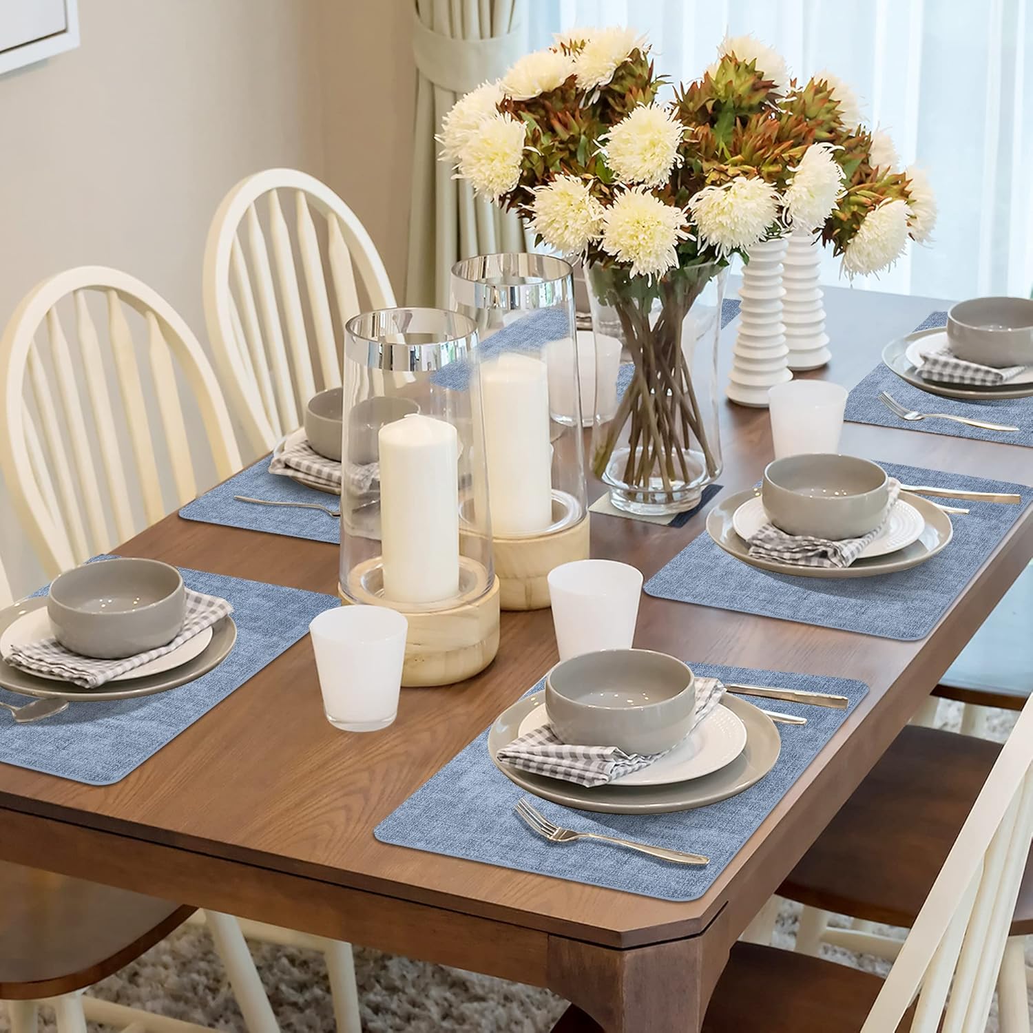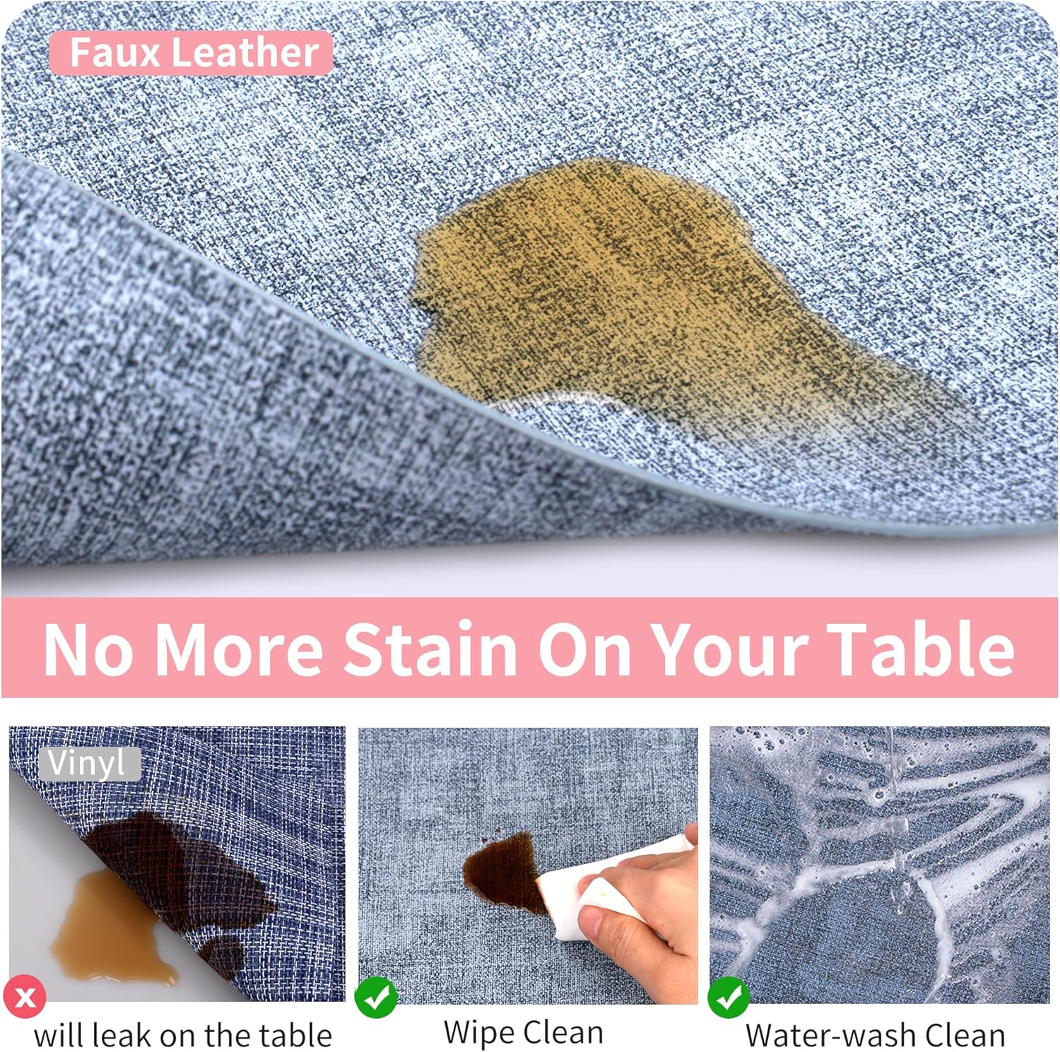- EASY CARE: Designed for ease of use, these durable table mats withstand any spills and stains, making clean-up a breeze. Just with a simple wipe with a rag or a rinse under the tap, they'll be spotless and ready for your next meal.