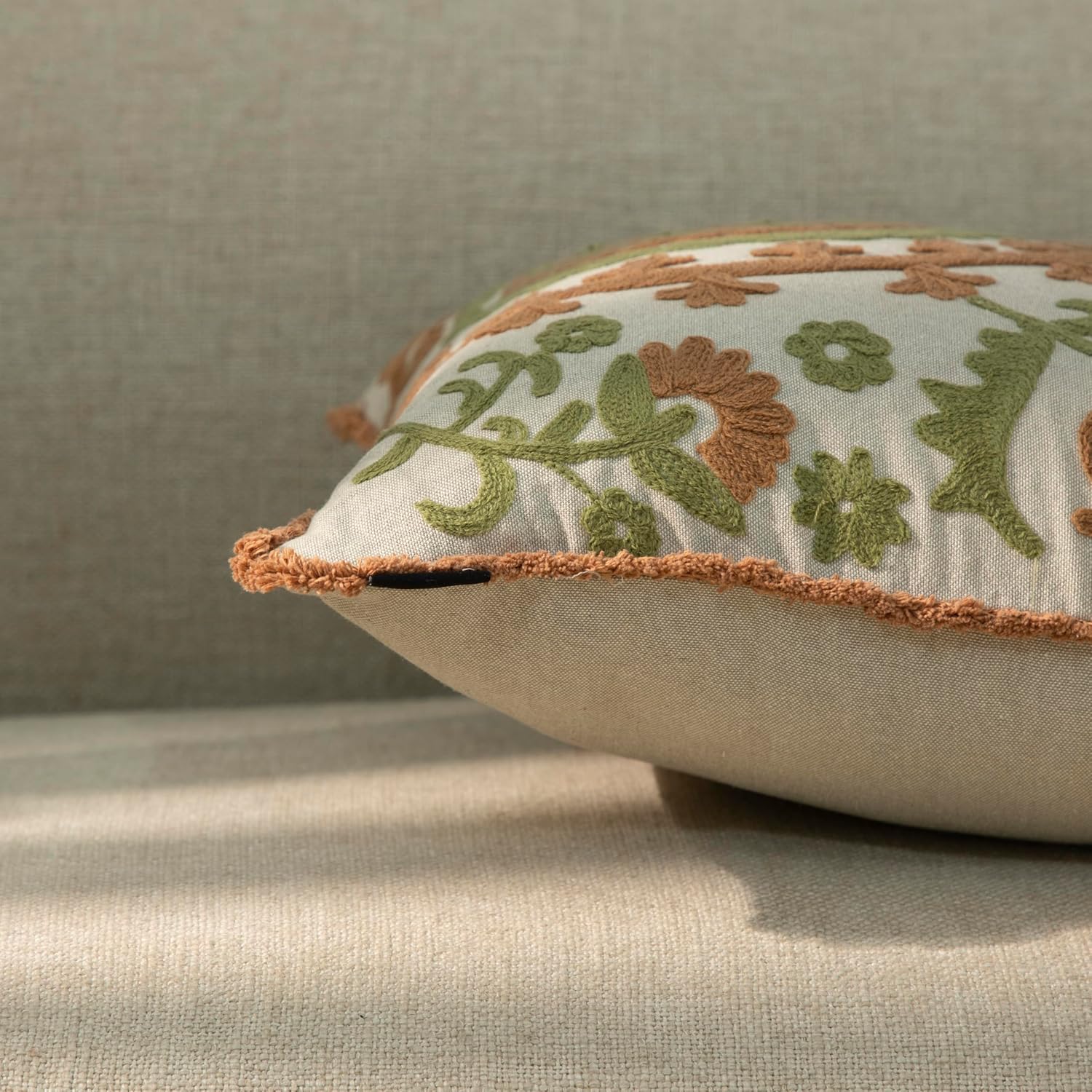 Embroidered Mandala Floral Vintage Indian Cotton Decorative Embroidery Throw Pillow Covers, Fringes Lace Cushion Cover, Pillow Case for Sofa Couch Bed Chair 18" x 18"