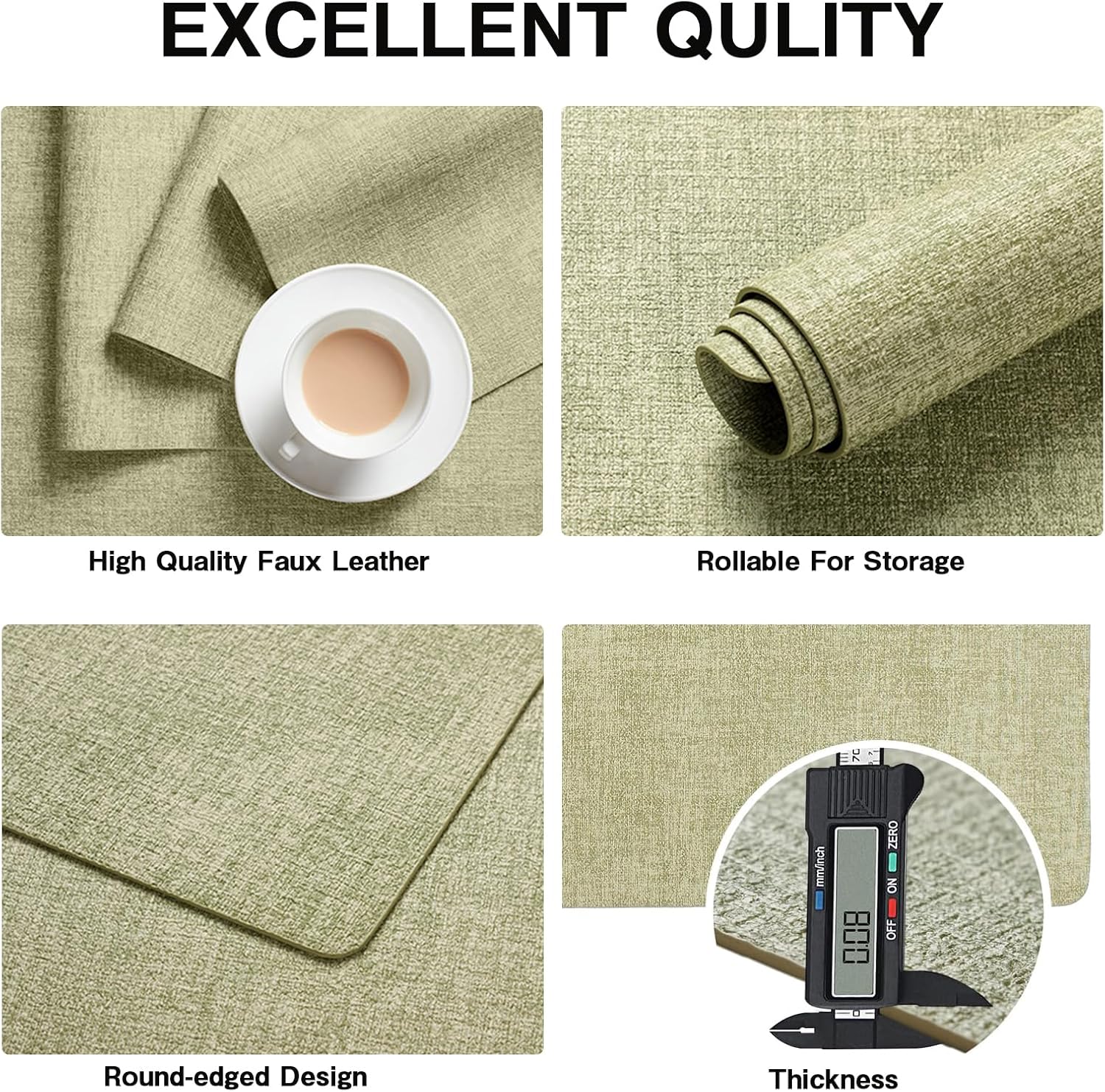 - PREMIUM QUALITY: Our vinyl placemats are made of high quality and durable faux leather.Fine workmanship ensures superior quality and long-lasting durability of the place mats, easily protecting your table from scratches and stains.