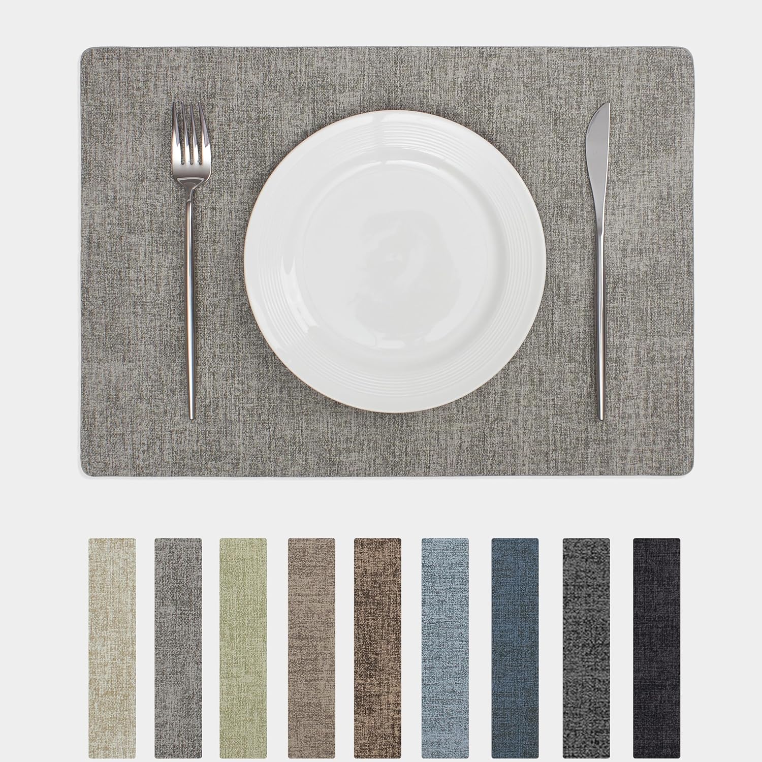 Chrysameld Vinyl Placemats Set of 6 - Faux Leather 100% Waterproof Oil-Proof Wipeable PU Place Mats, Heat Resistant Anti Slip Reversible Table Mats for Indoor & Outdoor Use,(17×12Inch, Light Grey)